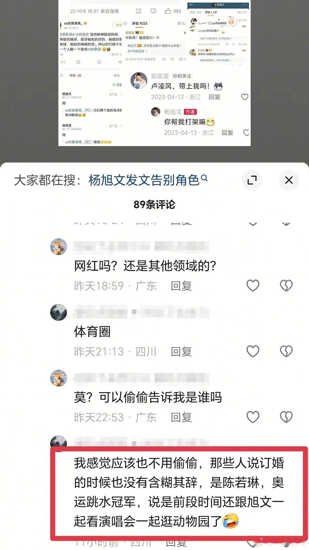 网传杨旭文和跳水冠军陈若琳订婚了,对此杨旭文工作室发文回应:假杨旭文 陈若琳杨旭文方回应