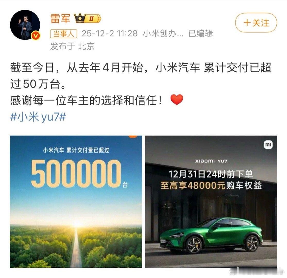雷军回应小米汽车交付量超全年目标“当你不再依靠掌声才能绽放,你就真正拥有了无可替代的光芒