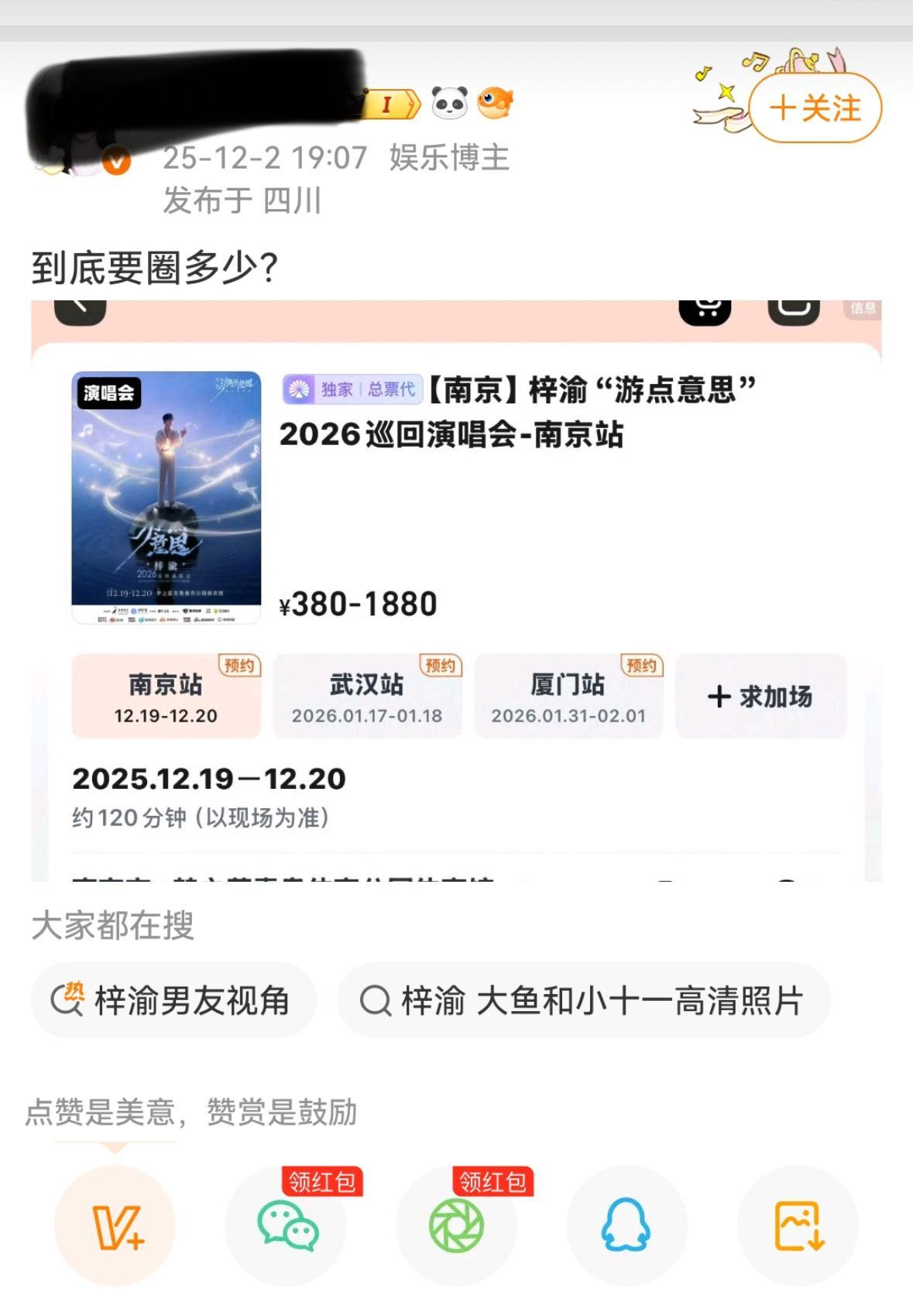 梓渝官宣了三场演唱会