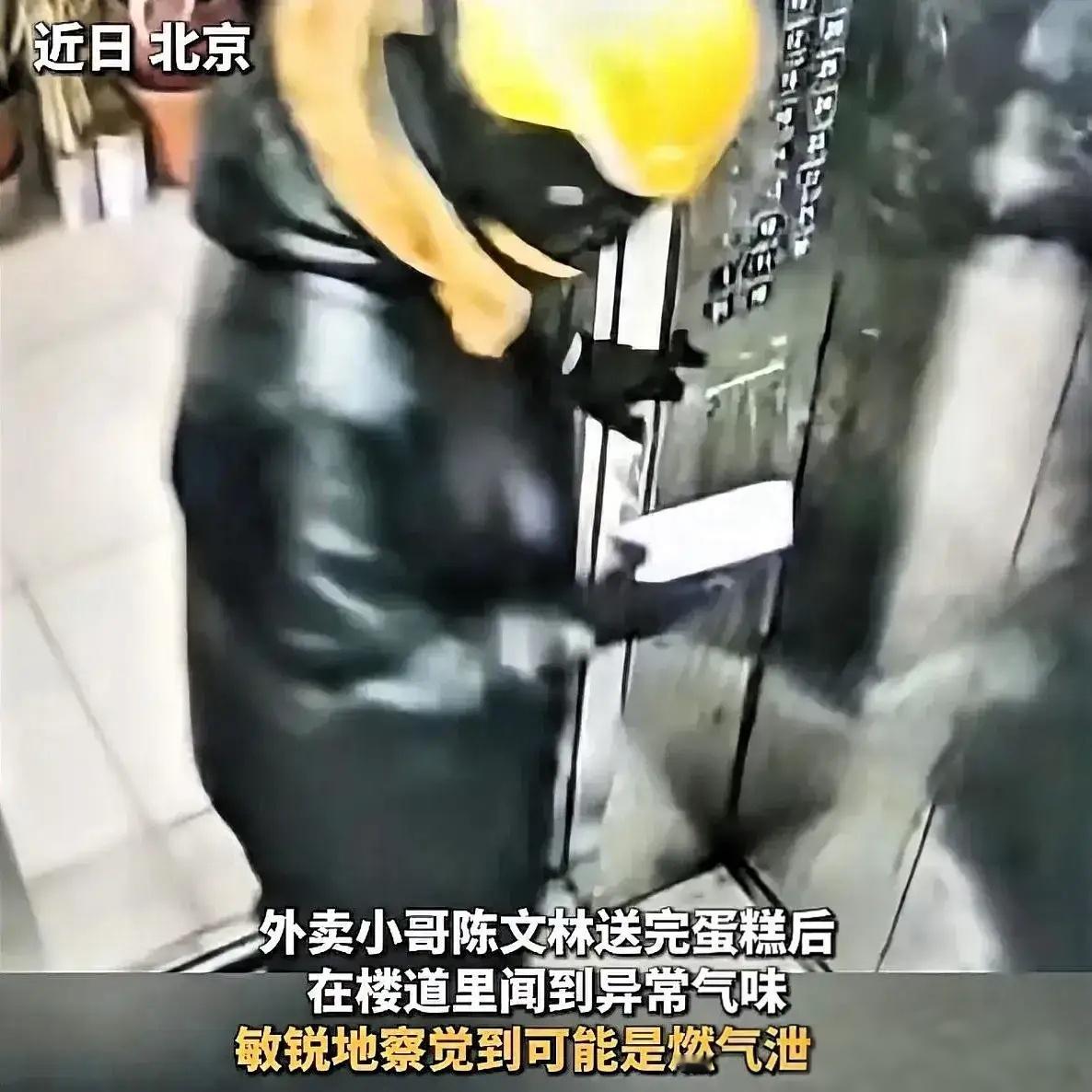 谁能想到,一个外卖小哥的本能反应,竟救下了整层楼的人。北京通州这一幕,越想越后怕,也越品越暖。 外卖小哥陈文林送完生日蛋糕,电梯门刚要合上,鼻尖突然一抽。他猛地顿住:“不对,这味不对劲。” 没有丝毫犹豫,他掉头哐哐敲开顾客家门,一把将人拽到楼道:“大哥快闻!燃气漏了!” 顾客吓得脸色煞白,陈文林又把他推向楼梯口:“你先撤,赶紧报警!”自己则冲进刺鼻的燃气味里。 此时他手机还跳着取餐倒计时,超时一分钟扣三块钱,可他连看都没看一眼。 “家里有人吗?燃气漏了!快出来!”他攥紧肩带,拳头砸得门板咚咚作响,嗓子都喊哑了。 终于,一位老太太开门,陈文林半扶半推将她送下楼:“您先躲躲,安全了再上来!” 把能叫开的住户都送走后,他狂奔到保安室,拽着保安就往楼里冲:“快关总阀!晚了就炸了!” 民警和消防车很快赶到,陈文林扒着楼道口给消防员指路:“味最浓的是中间几户,人都撤了!” 经查,是住户燃气软管老化破裂,灶上还有烧干的锅,再晚几分钟后果不堪设想。 隐患排除后,陈文林才发现订单已超时二十分钟,扣款红字格外刺眼。他揉了揉发红的手背,没半句抱怨。 后来平台发了见义勇为奖金,社区也送了锦旗。有人问他不心疼扣款吗?他挠挠头:“人家一家子的命,比这点钱重要。” 生活里没有那么多超级英雄,更多的是陈文林这样的普通人。危难时不躲不缩,用一份本能的善意,拦住了灭顶之灾。 这份藏在烟火里的勇敢,才是我们最踏实的安全感。如果你是他,会怎么做?欢迎评论区聊聊。
