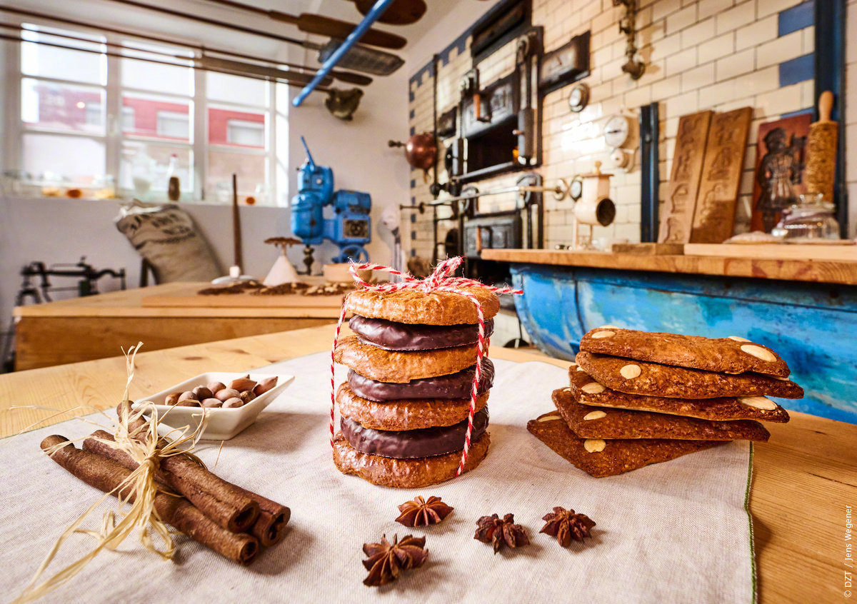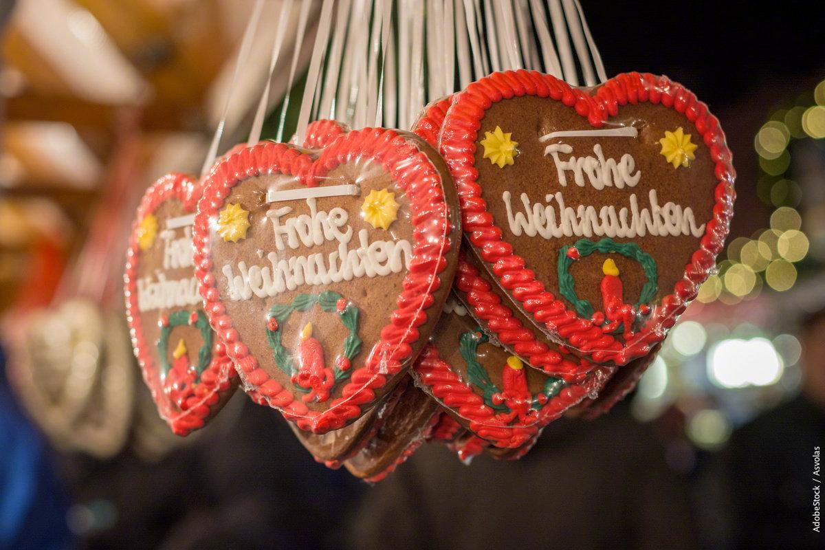 【这里是德国】没有姜饼的圣诞市场是不完美的。姜饼是介乎于蛋糕与饼干之间的小点,原料中有大量蜂蜜,加有胡椒香料,口味非常独特。很多姜饼还会裹上巧克力或白糖浆,有的还加入杏仁、榛子等。各种可爱的形状更让它深受孩子们的喜爱。 源自:德国国家旅游局