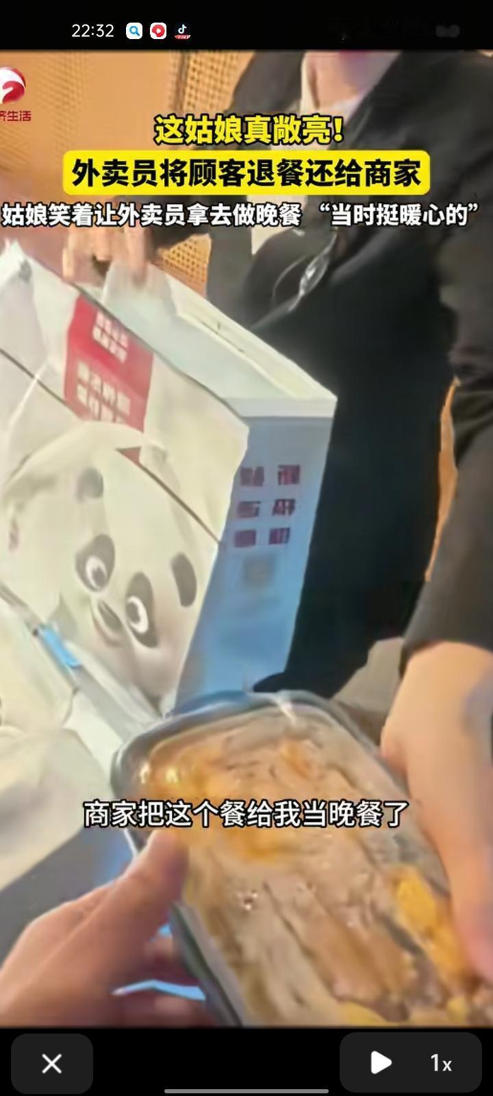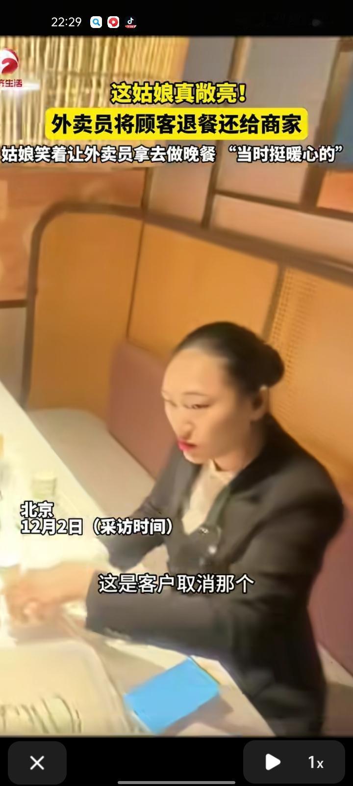 12月1日,北京。用餐高峰期因商家出餐慢导致顾客取消订单,外卖骑手把餐食退给商家,没想到商家让骑手拿去做晚餐。商家的举动挺让人暖心的,这下不用动手做饭了。