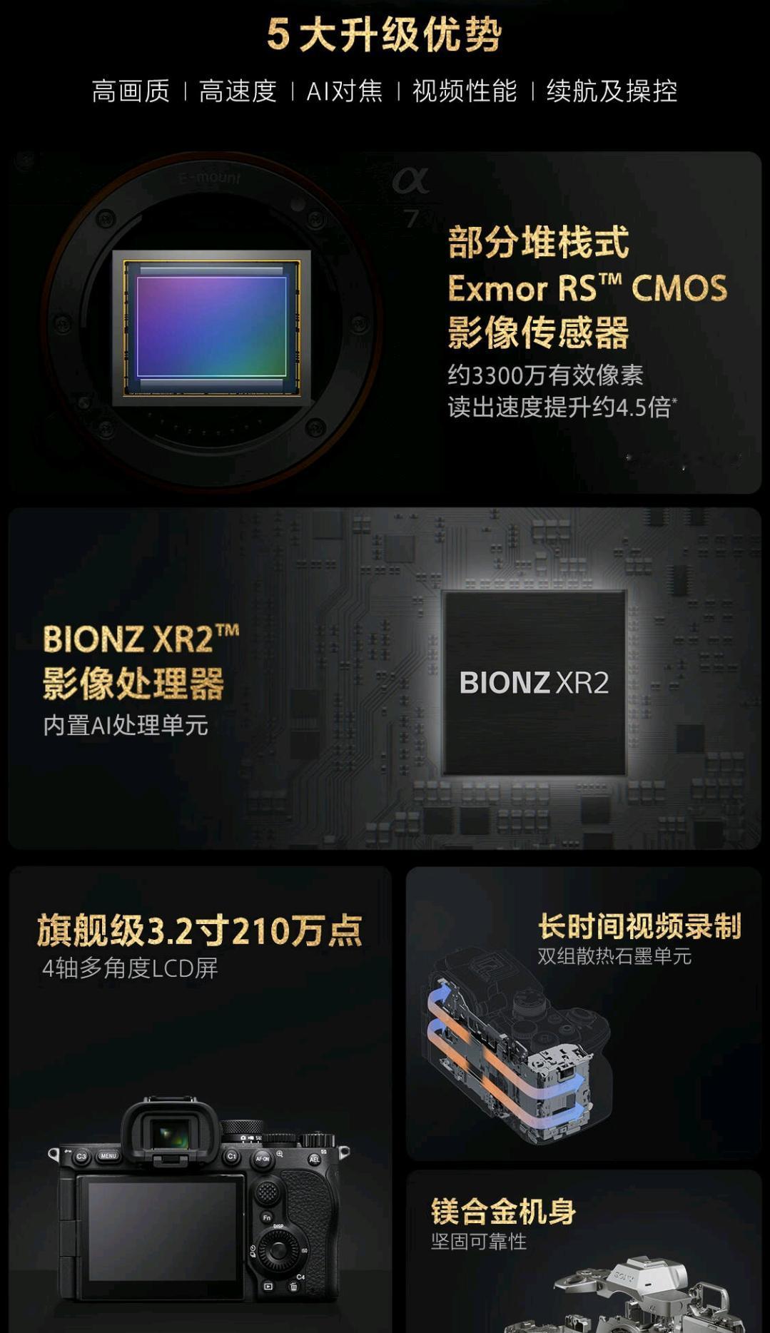四年磨一剑,索尼A7M5发布,售价17999元 ● 传感器:采用全新的3300万像素部分堆叠式CMOS传感器。 ● 拍摄性能:连拍达到30张/秒x14bit RAW,支持0.03 - 1秒的预拍摄功能。 ● 视频能力:支持无裁切的4K 60p视频录制,全新散热单元,比a74散热大幅提升。 ● 设计与操作:接口方面升级为双USB - C,取消micro - USB。 ● 机身重量:含电池和存储卡的重量约为695g。 ● 机身防抖:具备7.5级机身防抖。 ● 视频规格:支持无裁切4K60p,7k超采,有裁切4K120p。 ● 芯片配置:搭载A1II同款新型AI芯片。 ● 屏幕特点:配备自由角度翻转3.2英寸4轴多角度LCD触控屏。 ● 快门速度:拥有1/16000快门速度。 ● 存储卡槽:存储卡槽为1个SD卡槽 + 1个SD/CFexpress Type A混合卡槽。 ● LUT导入:支持16种lut导入。 ● 取景器:采用升级版电子取景器(约560万点)。 ● 机身设计:采用A7rV同款机身设计。 以为今晚就会低等一等,结果感觉手里的A7M4又香了,没有要换的欲望。