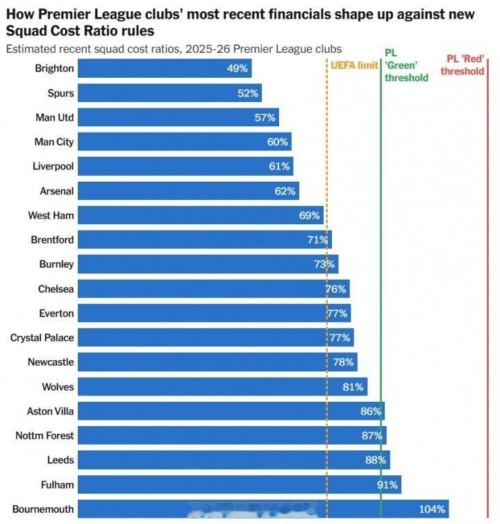 英超本赛季阵容成本比例预估,布莱顿49%最健康,阿森纳排名第六:布莱顿:49%热刺:52%曼联:57%曼城:60%利物浦:61%阿森纳:62% 英超联赛 阿森纳著名教授