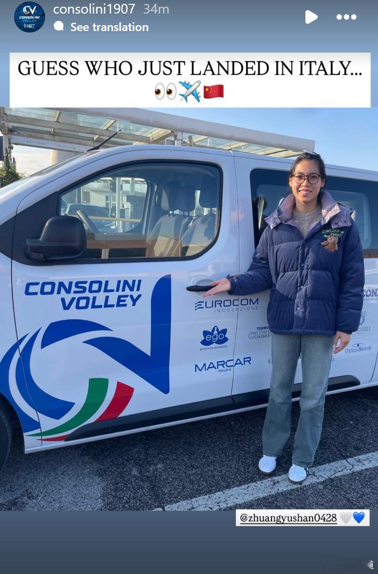 庄宇珊庄宇珊留洋第一季圣乔瓦尼俱乐部Ins通报:雨刷抵达意大利!中国女排