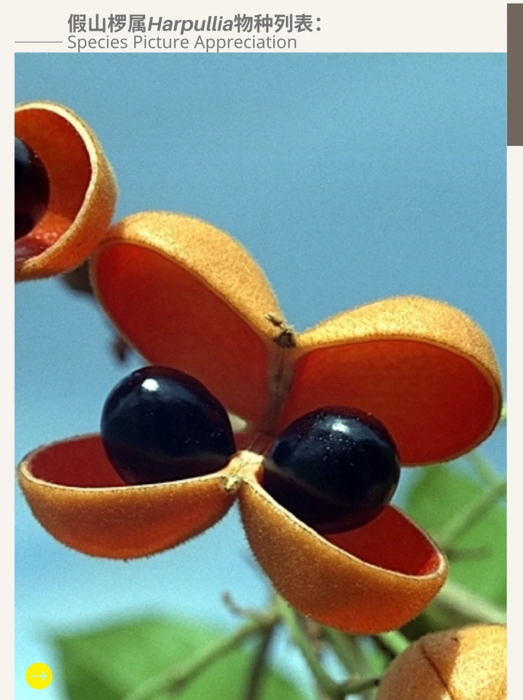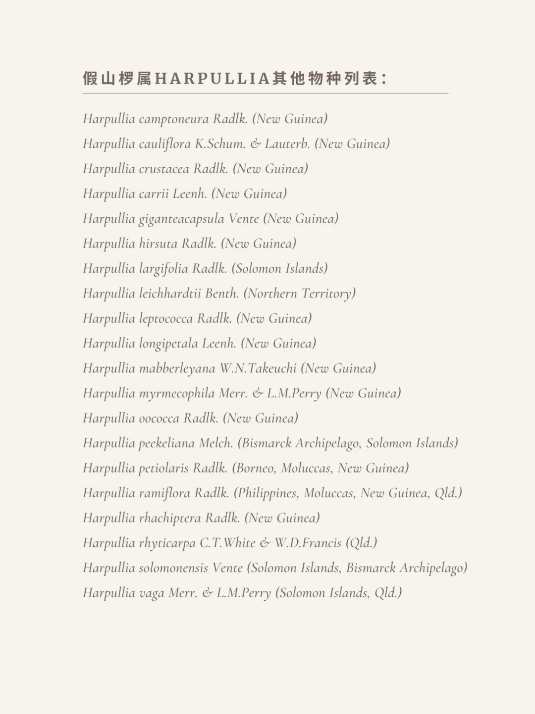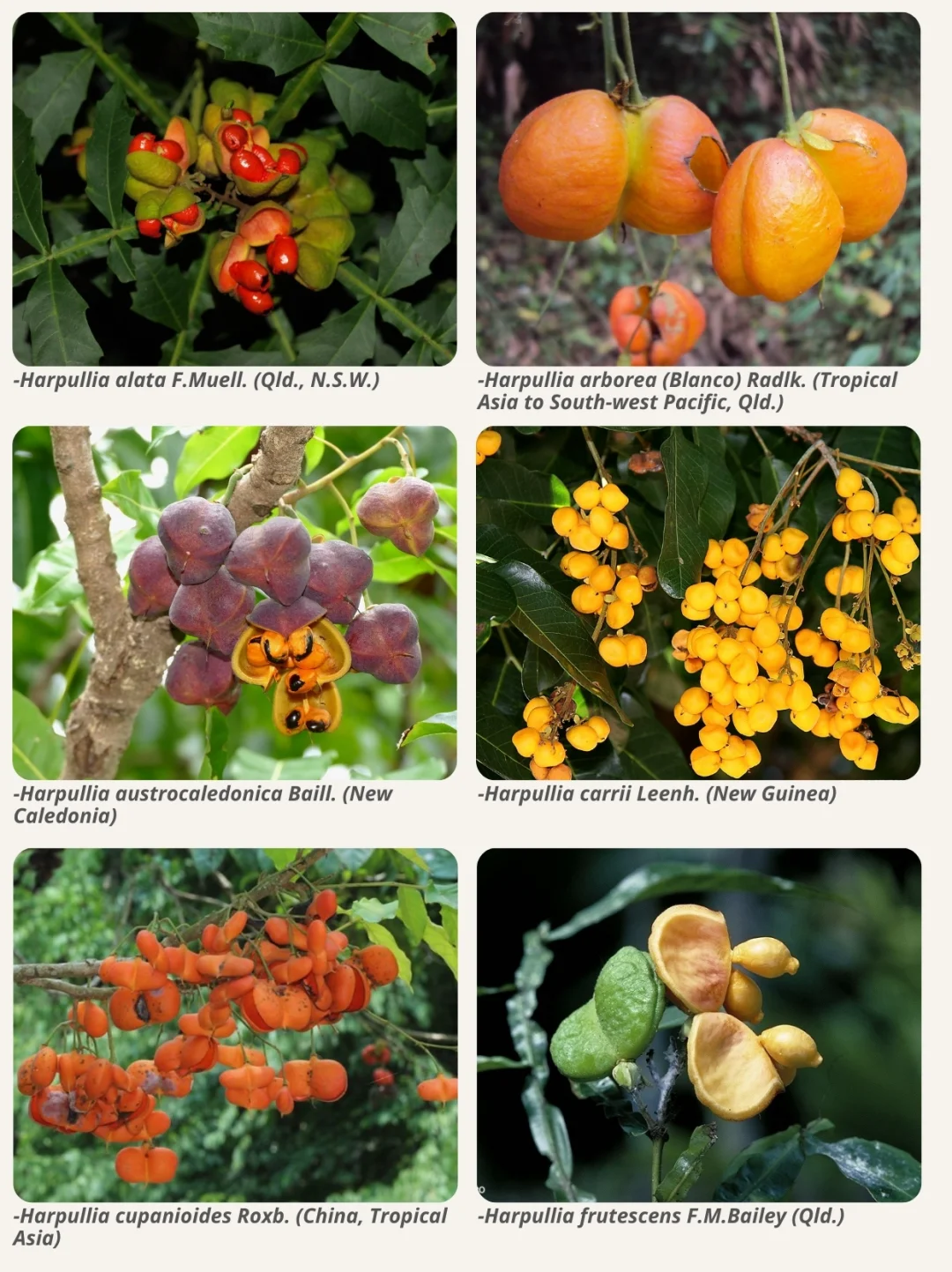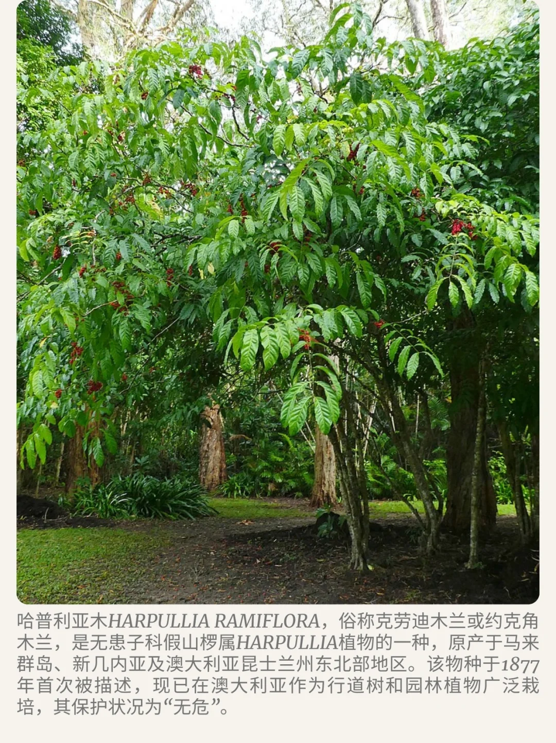 小乔木 无患子科 假山椤属 哈普利亚木 马来群岛 花园植物 行道树 种子 澳大利亚 哈普利亚木Harpullia ramiflora,俗称克劳迪木兰或约克角木兰,是无患子科假山椤属Harpullia植物的一种,原产于马来群岛、新几内亚及澳大利亚昆士兰州东北部地区。该物种于1877年首次被描述,现已在澳大利亚作为行道树和园林植物广泛栽培,其保护状况为“无危”。
