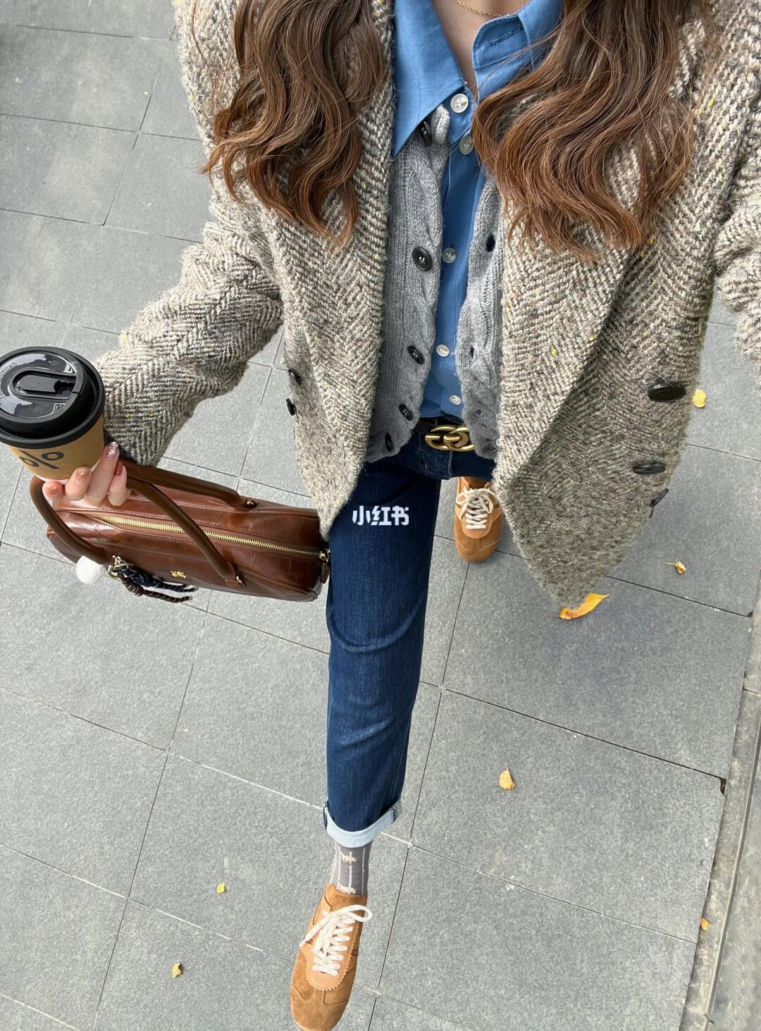这套也太减龄了叭!灰色大衣简直百穿不腻!❄️