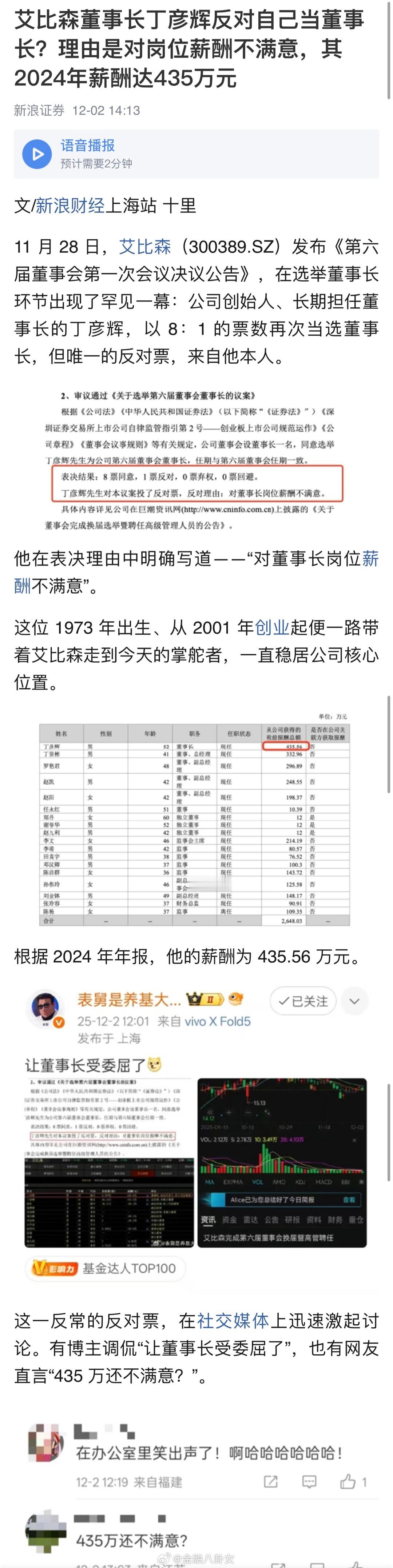 艾比森董事长丁彦辉反对自己当董事长?理由是对岗位薪酬不满意,其2024年薪酬达435万元