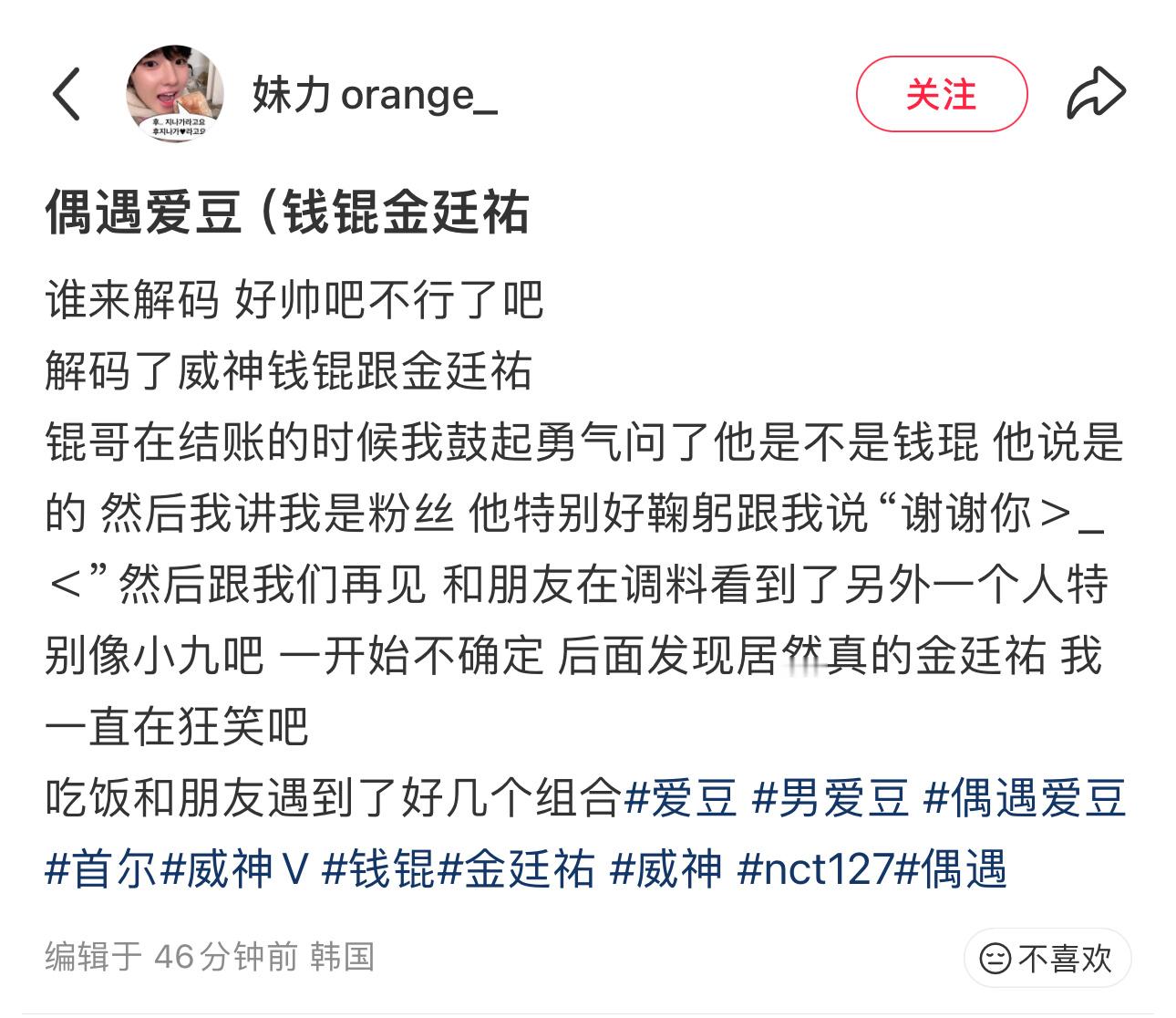 网友在韩国海底捞偶遇了钱锟和金廷祐!!!韩国海底捞偶遇钱锟金廷祐