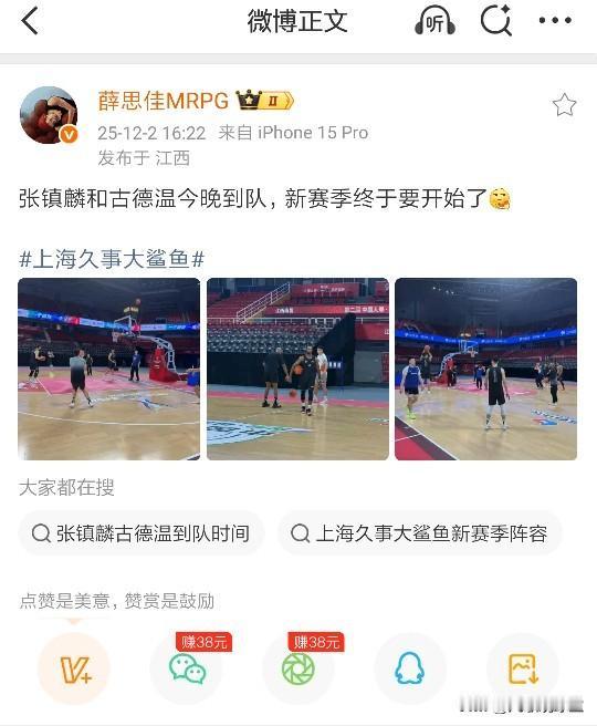 上海男篮跟队记者薛记透露,张镇麟已经归队备战俱乐部杯和新赛季的比赛了。信不信?国家队打得差归打得差,比赛结束后,两次惨败韩国这事就翻篇了,男篮这些球员回到俱乐部,回到联赛,还不是一样拿着高薪在联赛里自娱自乐,别看他们回国后个个神情凝重的样子,不出半个月,他们在联赛又是飞天遁地的样子!