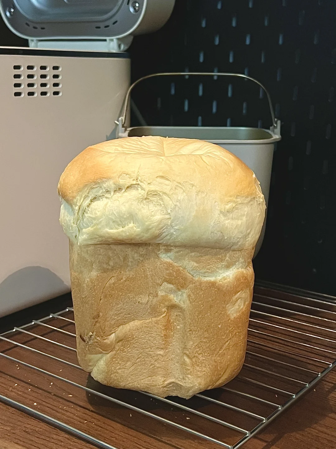 面包机食谱 每次做这个吐司都会被它惊喜到 云朵般的蘑菇头,柔软细腻,拉丝 空口吃,做三明治都非常优秀! 【春来吐司】 高筋面粉 250g 奶粉15g 水100g 全蛋液28g 牛奶28g 淡奶油18g 糖46g 盐3g 耐高糖干酵母3g(放酵母盒 黄油25g 方法一: 软面包模式,酵母放酵母盒,20分钟后放黄油 方法二:预约 1️⃣20:00 除黄油和酵母的所有材料放入面包桶,揉面15分钟,盖保鲜膜冷藏水合 2️⃣睡前23:00 取出面包桶,加入黄油,酵母放酵母盒,选择程序8软式面包模式,预约到第二天早上你需要的时间即可
