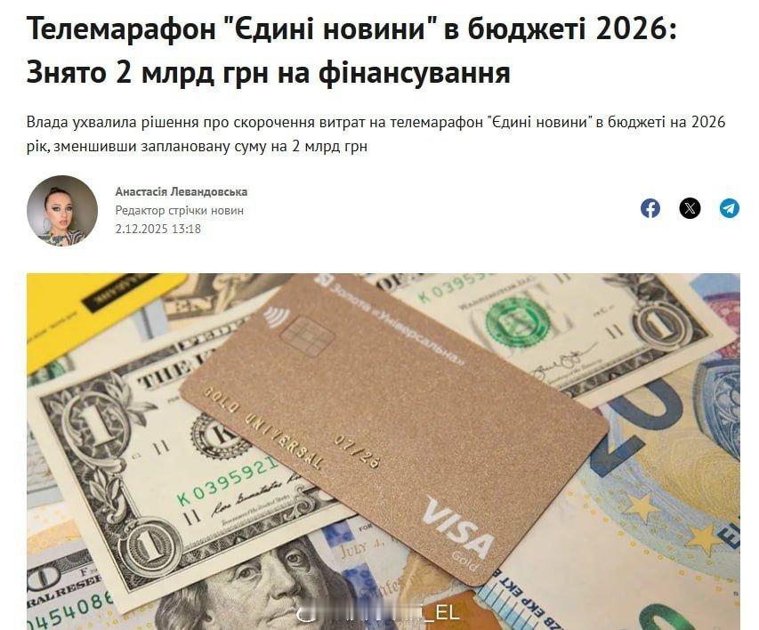 乌克兰最高拉达计划在2026年大幅度削减对政治宣传电视节目的资助。