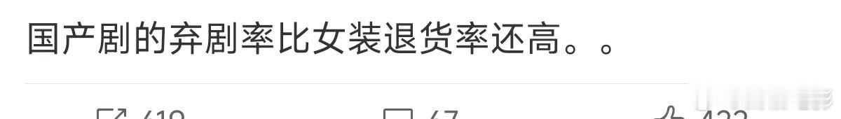 国产剧的弃剧率比女装退货率还高国产剧的弃剧率比女装退货率还高,所以现在还有没有不违心夸剧的博主在啊,我真的需要