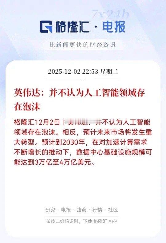 英伟达这话说得挺直白,意思就是说,这才哪到哪?好日子还在后头呢,作为AI热潮最大的卖铲人,它当然最有底气这么说!泡沫论那是根本不存在的,理由是市场正在经历一场大换血,传统计算正被加速计算取代。它预测的数据中心市场规模更是惊人,好几万亿美元。这不光是在喊口号,等于是在说,你们现在看到的AI应用,未来都需要它的芯片做底层支撑!当然,自家孩子自己夸,但这话也给市场提了醒,别光盯着股价,真正的竞赛是基础设施的全面升级。英伟达的自信,是建立在它几乎垄断了这场升级的硬通货上。未来靠不靠谱,就看这些预测的需求,是不是真能落地了!