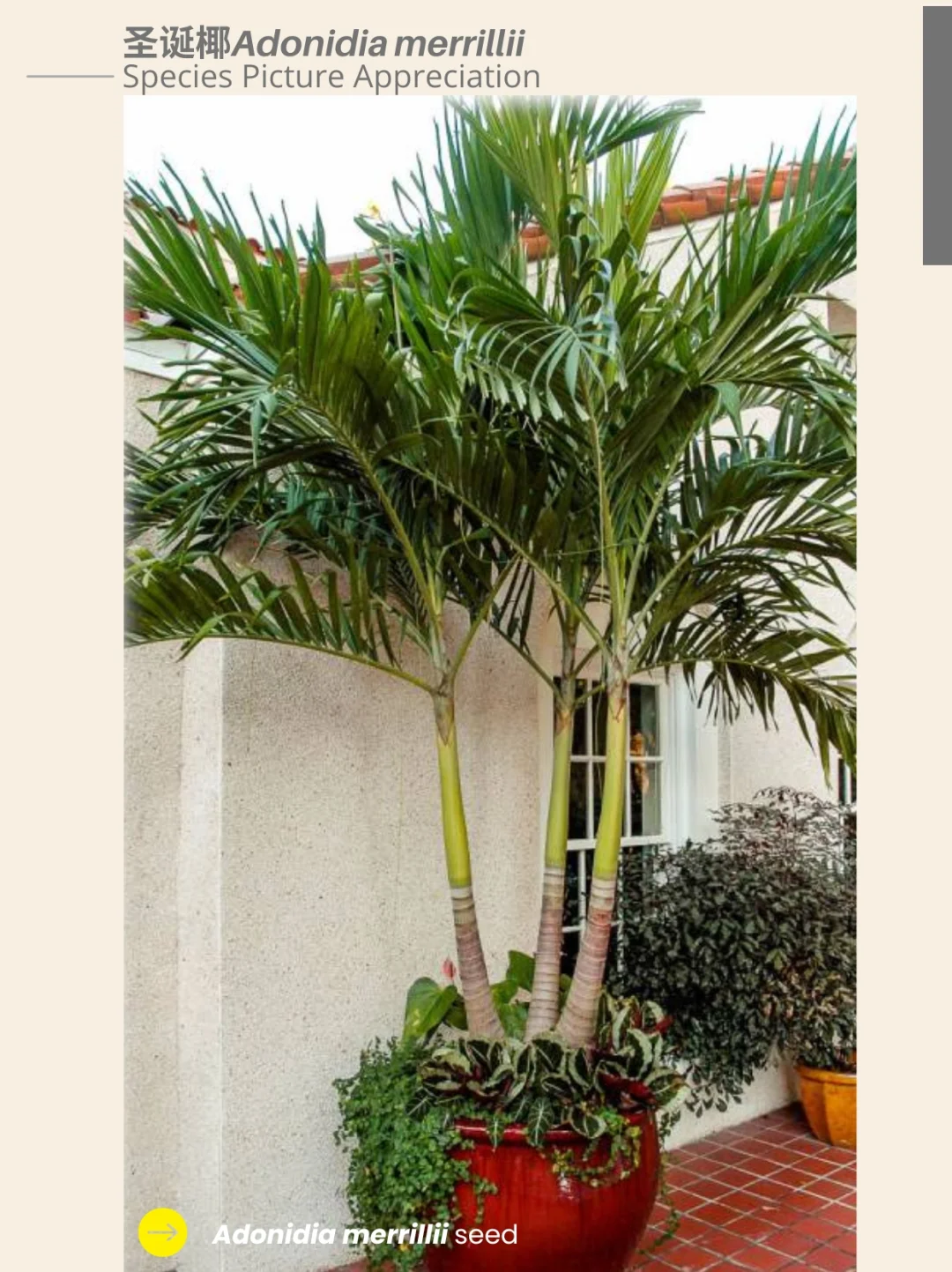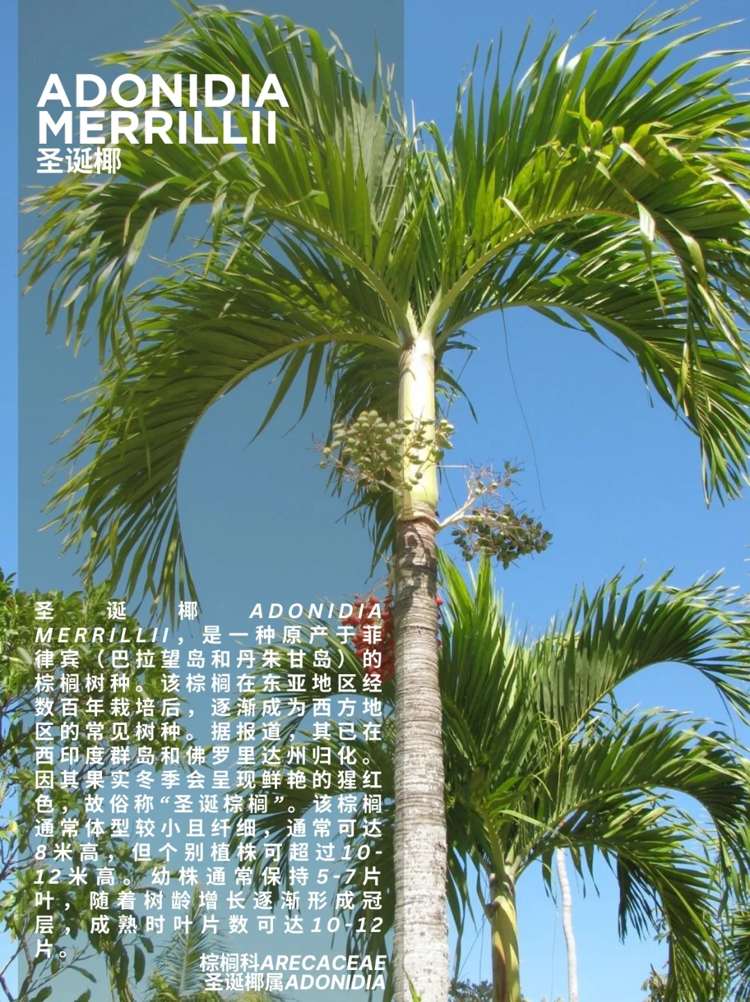 棕榈 圣诞椰 圣诞棕榈 菲律宾 室内绿植 槟郎 观赏植物 花园植物 圣诞椰Adonidia merrillii,是一种原产于菲律宾(巴拉望岛和丹朱甘岛)的棕榈科Arecaceae圣诞椰属Adonidia