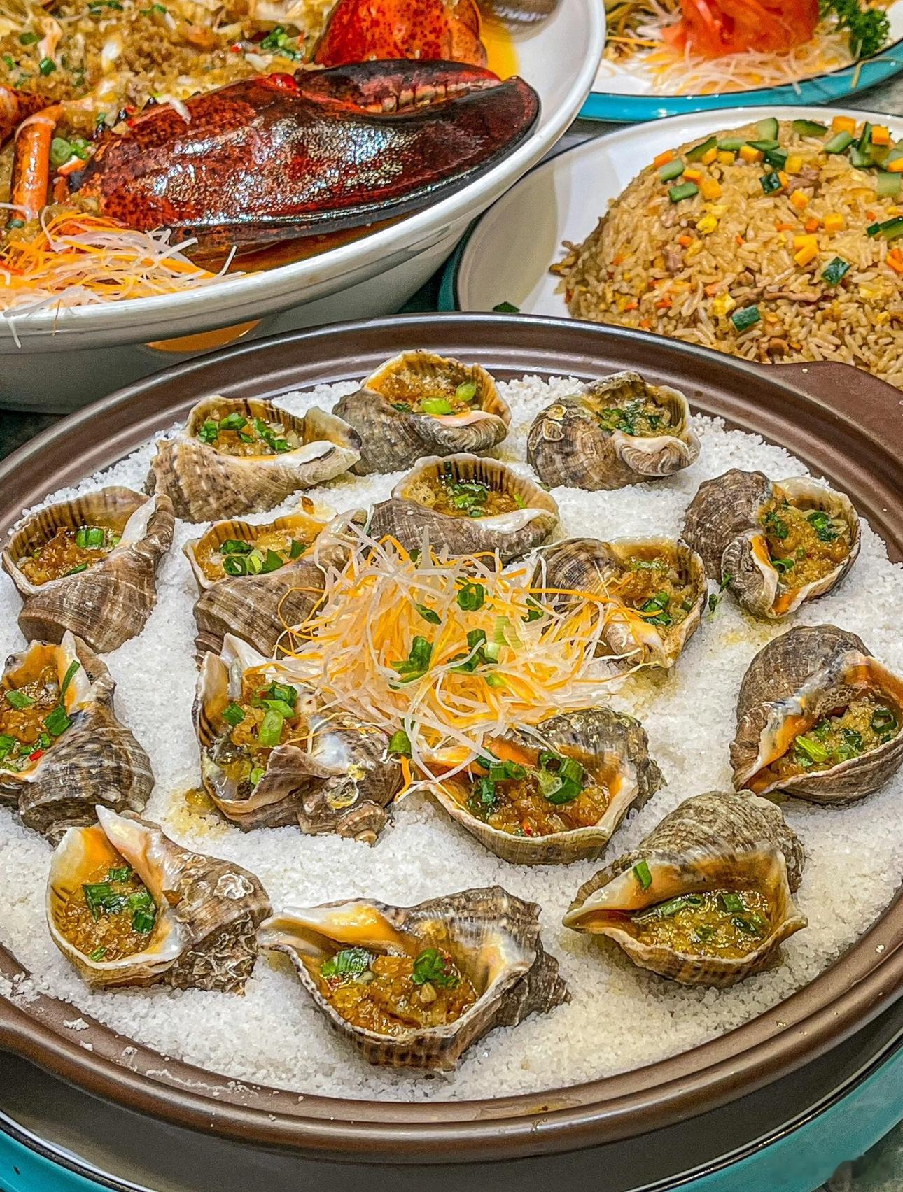 美食分享 清蒸帝王蟹 蒜蓉蒸波士顿大龙虾 蒜蓉盐焗海螺 肉沫蒸蟹膏