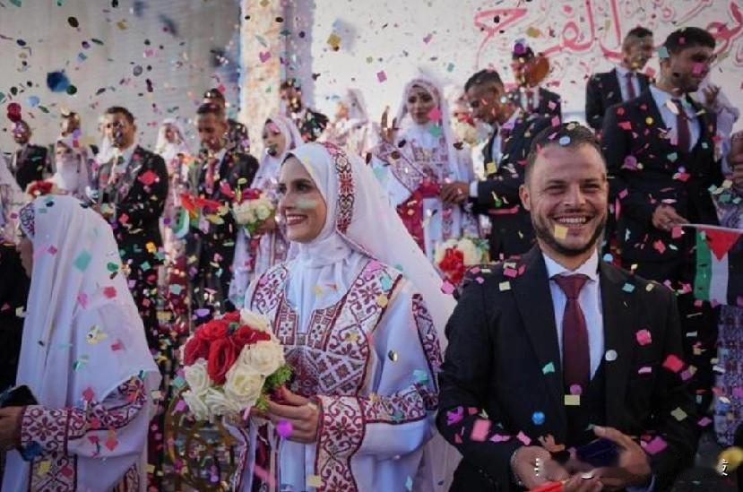 加沙举行集体婚礼,庆祝战争和悲剧多年后的新生活! 身着传统巴勒斯坦印花服装,埃曼 · 哈桑 · 劳瓦(Eman Hassan Lawwa)和希克马特 · 劳瓦(Hikmat Lawwa)手牵手走过加沙南部倒塌的建筑物,一行夫妇穿着和他们完全一样的衣服。这位27岁的巴勒斯坦人是星期二在饱受战争蹂躏的加沙举行集体婚礼的54对新人之一。在经历了两年的破坏、死亡和冲突之后,集体婚礼代表了一个难得的希望时刻。 在南部城市 Khan Younis,喧闹的人群挥舞着巴勒斯坦国旗,庆祝活动。因加沙地带持续不断的危机而受到影响。加沙200万居民中的大多数,包括埃曼和希克迈特,因战争而流离失所,整个城市地区被夷为平地,援助短缺和冲突爆发继续困扰着人们的日常生活。这对年轻夫妇是远亲,在战争期间逃到附近的 Deir al-Balah 镇,一直在努力寻找食物和住所等基本生活用品。他们说,考虑到他们周围的情况,他们不知道如何共同建立他们的生活。“我们希望像世界上其他人一样快乐。我曾经梦想有一个家,一份工作,和其他人一样。”。“今天,我的梦想是找到一个帐篷住。“生活已经开始回归,但并不像我们希望的那样,”他补充道。 塞尔汉说:“每一场新的婚礼都会迎 来新的孩子,这意味着记忆和血脉 不会消逝。这些夫妻将在不可能的 情况下继续生活下去。“周二,载 着新婚夫妇的车队穿过一片片倒塌 的建筑。希克马特和埃曼和其他新 婚夫妇一起挥舞着巴勒斯坦国旗, 周围的家人随着人群播放的音乐起 舞。劳瓦和埃曼周二身着白色、红色和绿色传统服饰的埃曼说,这场婚礼让他们在多年苦难后得到了片刻的解脱。但埃曼也提到了她父亲、母亲和其他在战争中丧生的亲人,她说:“在经历了这样的悲痛之后,很难再感受到快乐。”说着,泪水顺着她的脸颊滑落。“但愿上帝保佑,我们会块砖一块砖地重建家园。 对于巴勒斯坦人来说,婚礼通常是持续数日的盛大庆典,被视为一项重要的社会和经济选择,对许多家庭的未来有着决定性意义。婚礼上会有欢快的舞蹈,穿着新人和亲朋好友所选布料图案服装的大家庭会在街道上游行,还有堆满食物的盘子。 巴纳德学院的社会学教授兰达 塞尔汉(Randa Serhan)研究过巴 勒斯坦婚礼,她说,婚礼也是坚韧 的象征,是对延续巴勒斯坦传统的 新生代家庭的庆祝。 这对年轻的情侣是远亲关系,他们 在战争期间逃到了附近的德拉巴拉 镇,并且一直在努力寻找诸如食物 和住所等基本生活物资。他们表 示,鉴于目前的局势,他们不知道 该如何共同建立自己的生活。 “我们希望像世界上其他人一样幸 福。我曾经梦想拥有一个家、一份 工作,并和其他人一样生活。"希克 梅特说道。“如今,我的梦想是找到 一个帐篷来居住。 “生活已经开始恢复了,但和我们所 期望的并不一样。”他补充道。 这场庆祝活动是由阿勒法雷斯·阿 什米姆组织的,这是一个由阿拉伯 联合酋长国支持的人道主义援助行 动。