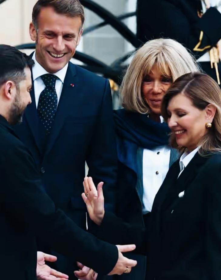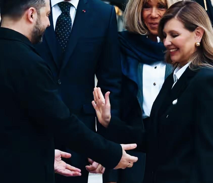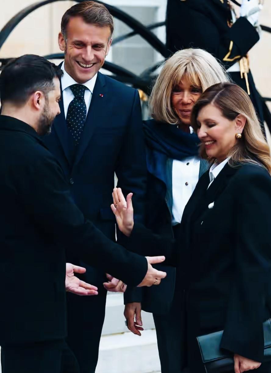 泽连斯基和妻子这是要准备干啥呢? 还吸引了马克龙和妻子的关注! 泽连斯基妻子脸上的笑容,说明她应该还比较开心吧! 现场氛围很愉快啊!