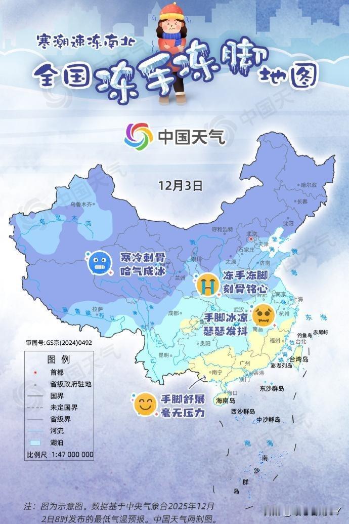 江苏的朋友们注意啦! 3日,全省受寒潮影响,淮北地区最低温达零下4 - 零下5℃,有冰冻现象;苏南地区为3 - 4℃,其他地区接近0℃。全省还刮着4 - 5级偏北大风,阵风可达6 - 7级。 4日,全省晴到多云,风力减弱至3 - 4级。不过,淮北等地最低气温仍在零下3℃左右,部分地区有冰冻。 5日,气温逐步回暖,东南部最高温能到11 - 12℃,可沿淮淮北最低气温依旧维持在零下2 - 零下3℃。 无锡本地气象台发布的12月3日到5日具体天气情况如下: 12月3日(周三):晴转多云,气温零下2℃ - 8℃,北风转东北风,风力由4 - 5级转为小于3级。空气状况较好,但气温偏低,前期风力较大,体感偏冷。 12月4日(周四):阴,气温1℃ - 9℃。风力相较于3日有所减弱,整体天气阴冷,早晚寒意明显。 12月5日(周五):多云转晴,气温4℃ - 10℃,气温开始回升,天气转好,适宜适当开窗通风,外出也会更加舒适。 早晚寒意浓重,大家出门一定要穿厚外套,戴上围巾、帽子。老人和小孩切勿长时间外出,谨防感冒。 江苏天气播报 冬日生活打卡季