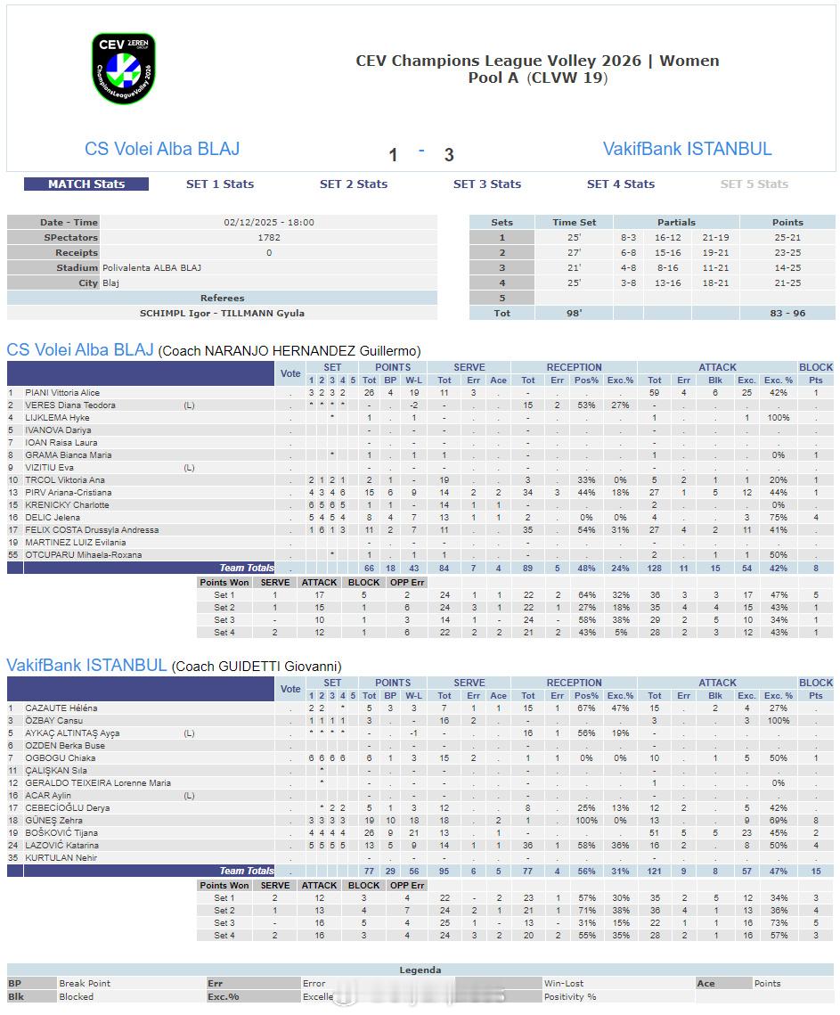 【欧冠女排瓦基弗3-1布拉日 博斯科维奇26分MVP】国际排坛战报速递 12月2日,欧冠女排第四轮第二回合,A组土耳其瓦基弗银行客场3-1(21-25/25-23/25-14/25-21)击败罗马尼亚布拉日,取得两连胜。MVP博斯科维奇26分、居内什19分(8拦)、拉佐维奇13分,皮亚尼26分、皮尔夫15分、菲利克斯-科斯塔11分。