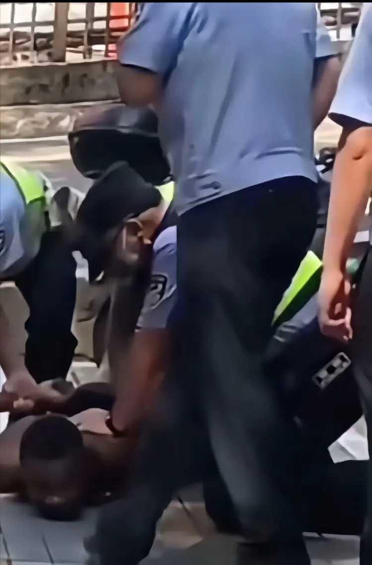 一非洲人在我国某地无视法律,扰乱秩序。 警察接警赶来,喝令其蹲下。 这非洲人不但不听,气焰反而更加嚣张,还大声嚷嚷说他是外国人,我国法律管不到他头上。 警察忍无可忍,把他摁地上铐了起来。 真不知道这个非洲人自恃什么,到了我们这儿,还以为高人一等。 真的可笑。