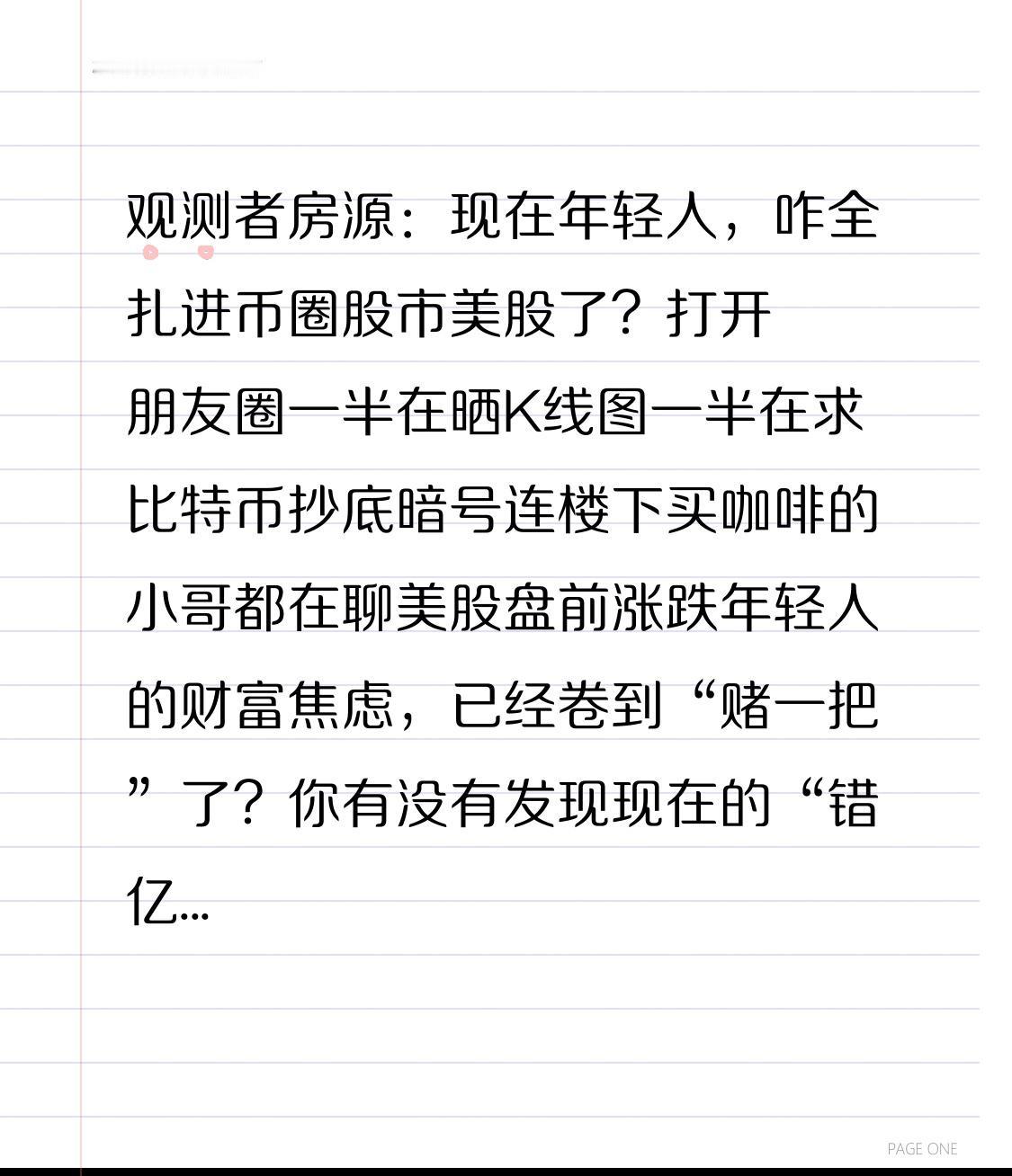 观测者房源:现在年轻人,咋全扎进币圈股市美股了? 打开朋友圈一半在晒K线图 一半在求比特币抄底暗号 连楼下买咖啡的小哥都在聊美股盘前涨跌 年轻人的财富焦虑,已经卷到“赌一把”了? 你有没有发现 现在的“错亿文学”变味了 不再是后悔没买房没炒股 而是“昨天没买比特币少赚两万” “美股熔断没抄底,错失一个小目标” 张口梭哈闭口杠杆 仿佛不碰虚拟币、不炒美股 就是跟不上时代的大冤种 但我就想反问一句 假如你月薪5000 却要拿3000all in比特币 告诉你月底能翻倍,不买就是傻 你真敢把房租和饭钱都砸进去? 假如美股开盘在凌晨三点 你定闹钟爬起来盯盘 结果眼睁睁看着账户绿得像刚摘的青菜 连早餐钱都亏没了 你还觉得这是“暴富机会”? 假如股票追高站岗 套牢的钱够你交半年房租 老板画的饼都没K线图骗得狠 你会不会后悔当初没把钱存起来? 说白了 年轻人不是想理财 是想走捷径暴富 总觉得别人靠炒币炒股买车买房 自己凭啥不行 但币圈的波动比过山车还刺激 前一天赚的钱能买新手机 后一天就可能爆仓归零 美股的时差能熬垮你的发际线 股票的涨跌能让你从狂喜到崩溃 那些喊着“躺赚”的人 不会告诉你他们亏了多少 那些晒盈利截图的人 大概率是为了拉你接盘 小赚靠运气 大亏靠跟风 稳赚靠清醒 年轻人总觉得“攒钱太慢” 却忘了“不亏就是赢” 余额宝的每日收益虽然少 但至少不会让你本金蒸发 慢慢积累的存款虽然不起眼 却能在需要时给你兜底 那些半夜爬起来看K线的日子 那些为涨跌睡不着觉的夜晚 真的不如把钱存起来 踏实搞事业、学技能 毕竟靠运气赚的钱 迟早会靠实力亏回去 观测者房源见过太多 因为跟风炒币炒股亏光积蓄的年轻人 财富从来没有捷径 稳扎稳打的积累 才是普通人最靠谱的“暴富密码” 觉得我说得实在的 点赞+关注+转发 提醒身边想“赌一把”的朋友 评论区聊聊 你有没有跟风炒币炒股的经历? 最后赚了还是亏了? 比特币行情 比特币价格 币圈波动 比特币陷阱 国泰君安比特币 比特元 加密市场暴跌