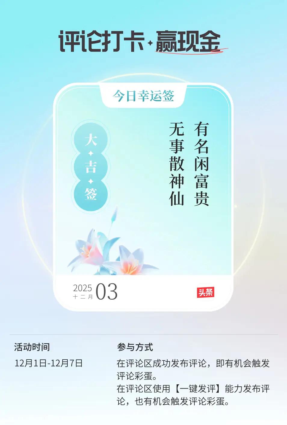 有名闲富贵 无事赛神仙 ——这是今天的运势签,想一想,其实是这样的。 有梦闲富贵 无知赛神仙 ——闲富贵,只有在梦里才敢想一想;要想无忧无虑的神仙一样的日子,千万别太聪明,想的太多,糊里糊涂过春秋,一分聪明一分苦恼,人类一思考,上帝就发笑大概就是这个意思。