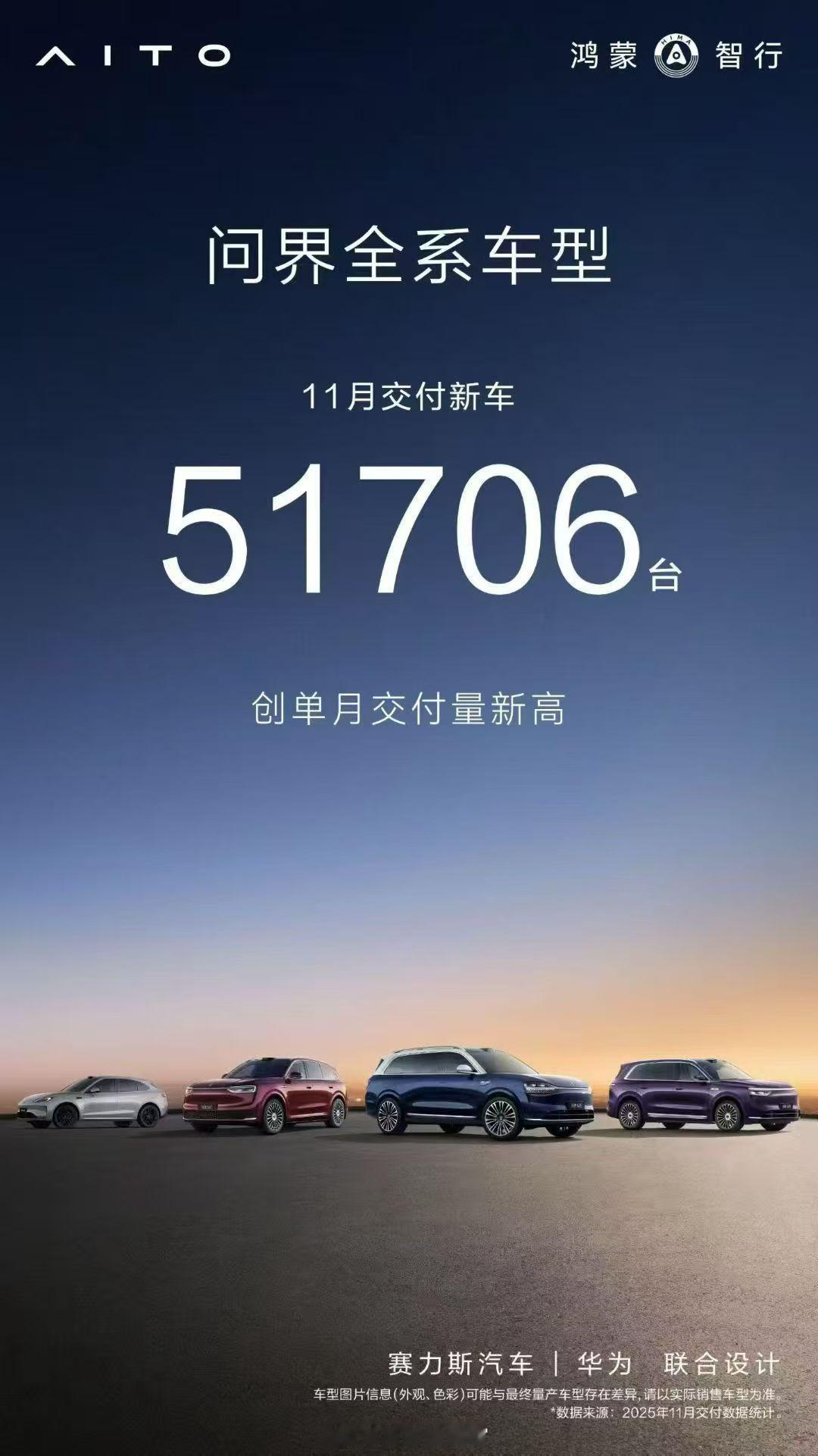 问界全系 11 月交付 51706 台。问界308_IO新能源汽车