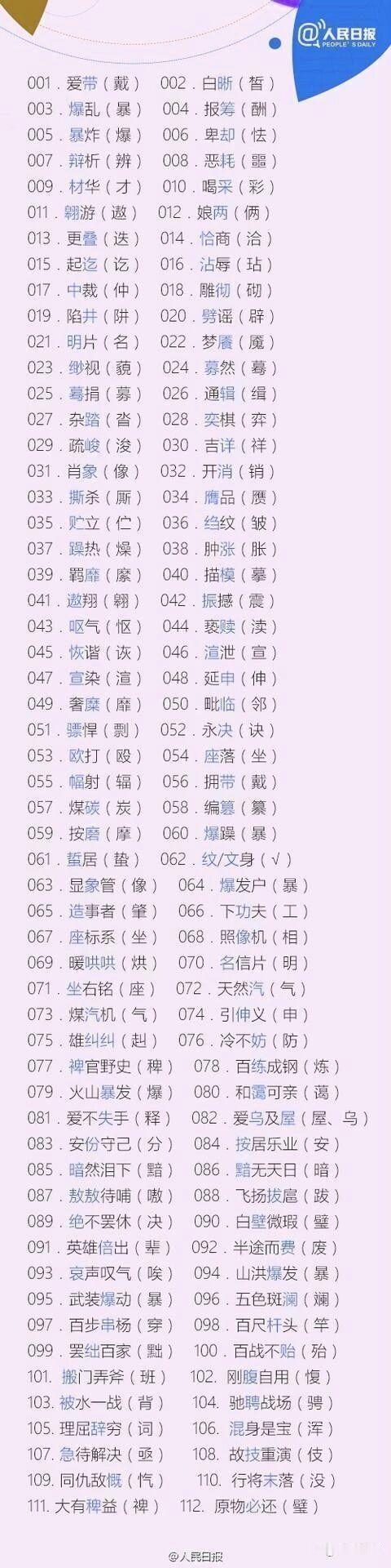 888个常见错别字你知道多少?一起赶紧来看看吧!注:()括号里的才是正确的