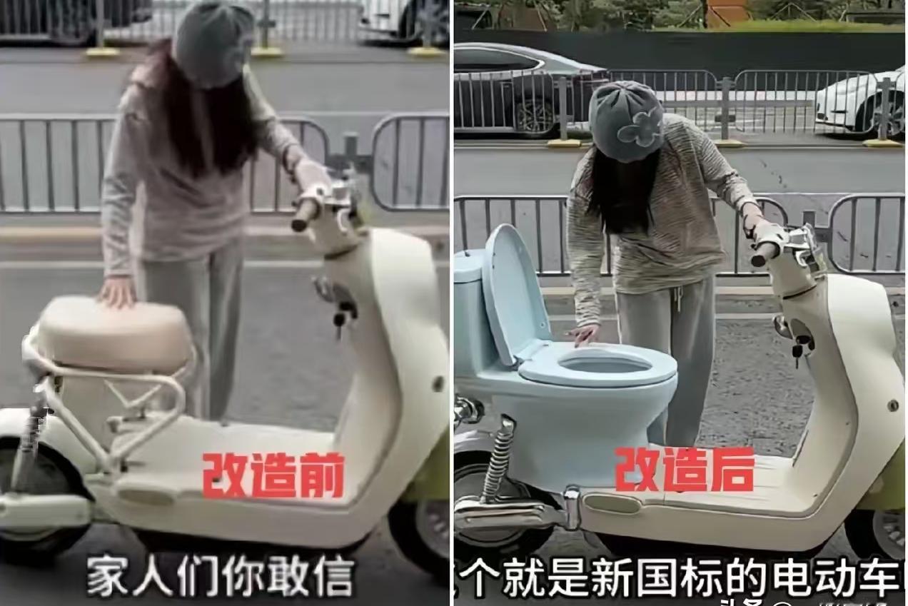 大家不要再骂新国标电动车了! 我们都误会专家了! 其实专家真的有为我们最紧急的事情考虑! 网友这波神改装直接封神——车座底下的空当居然能塞马桶底座,人有三急时当场解决刚需,不用慌慌张张找公厕。平时不用的时候,放头盔、塞菜袋刚好适配,这不比光秃秃的铁架子实用多了? 其实新国标限速、减塑件是为了安全,但大家吐槽的储物少、不实用也没毛病。 与其硬扛设计缺陷,不如学网友这样盘活闲置空间,这才是普通人的智慧啊! 安全和方便本就不该对立,政策兼顾刚需的同时,咱们也能靠巧思让车子更顺手。 你还见过哪些新国标电动车的神仙改装?或者你觉得这车还有啥能优化的地方,来评论区聊聊~ 新电动车新规 电瓶车新国标