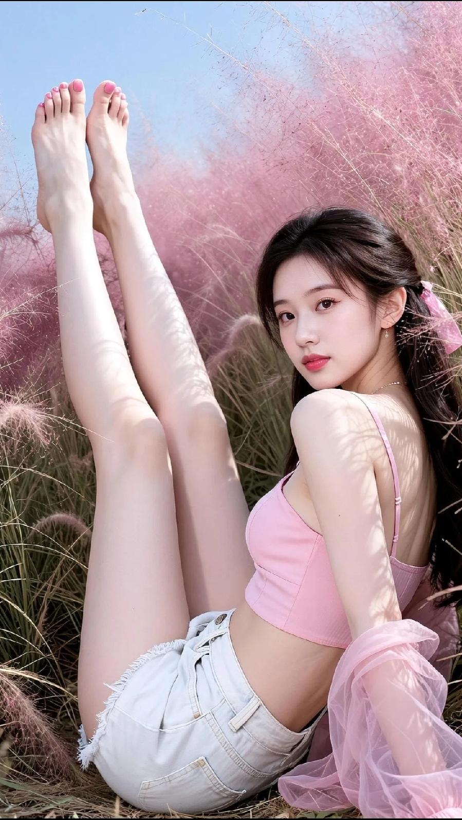 光之影 粉衣少女坐,笑语入画来。