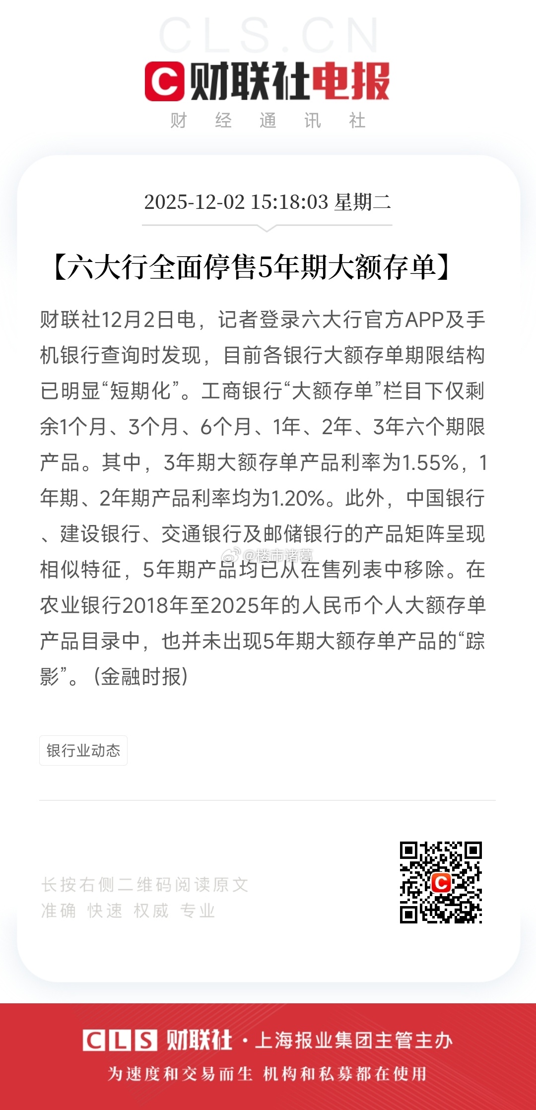 年末刚至,两记重拳接连落下。一边是,六大行全面停售5年期大额存单,3年期额度紧缺,2年期利率低至1.2%;按目前形势看,存款利率还得往下掉。那个靠长期存款就能锁定高收益的时代,已经一去不复返了。另一边是,上海出手整顿网络房地产市场信息,半个月内,各平台已清理涉唱衰楼市等违规信息超4万条。稳预期、控风向的信号,明确而有力。一收一护之间,政策语言其实已经相当直白:资金需要流动起来,核心资产的信心必须稳住。。楼市第一线