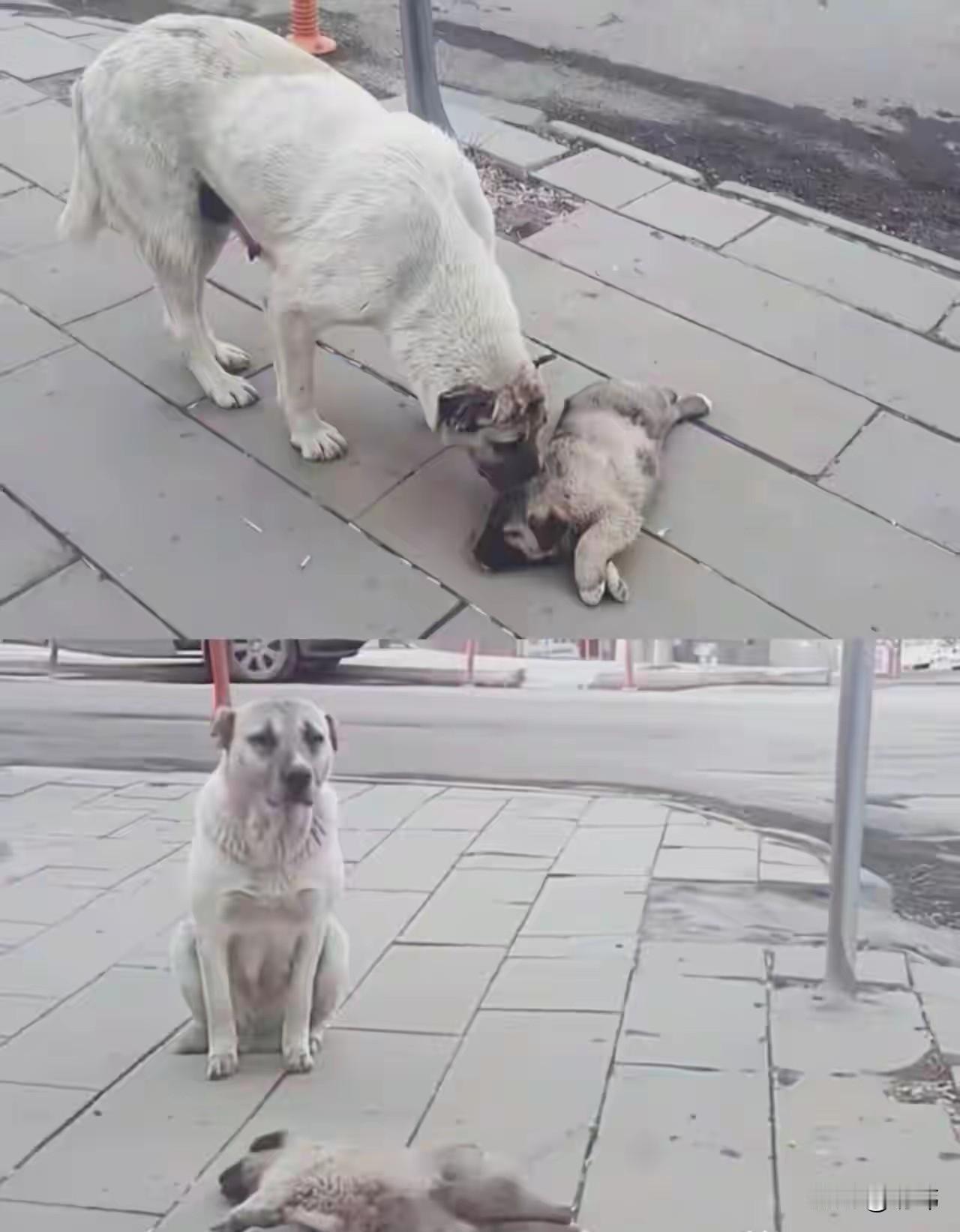 太可怜了!这天一只流浪狗妈妈带着自己的孩子去乞食,可当它们过马路的时候,狗宝宝不慎被车撞了,狗妈妈立刻把它叼到了安全的路边,可惜狗宝宝已经失去了生命。 狗妈妈试图唤醒自己的孩子,可根本就没有反应,也没有发生奇迹,它只好不断发出哀嚎,想要叫醒孩子,可还是无济于事,而它悲惨的叫声吸引了一位善良的小姐姐的注意,她看到眼前这一幕,非常同情狗妈妈和孩子的遭遇,于是她就把狗宝宝安葬在了公园,然后把狗妈妈送去宠物医院检查并打了疫苗,然后就收养了它,相信在她的照顾下,这只狗妈妈也会越来越好的。