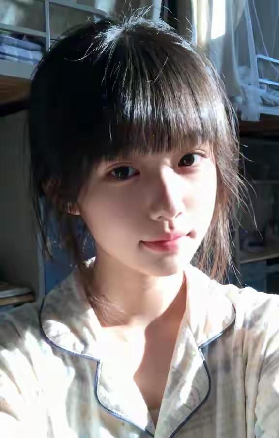窗帘漏进来的光刚好裹住发梢,睡衣领边的蓝线沾了点懒意。没梳顺的碎发翘着,这分钟的镜头里,是刚睡醒的软乎乎。