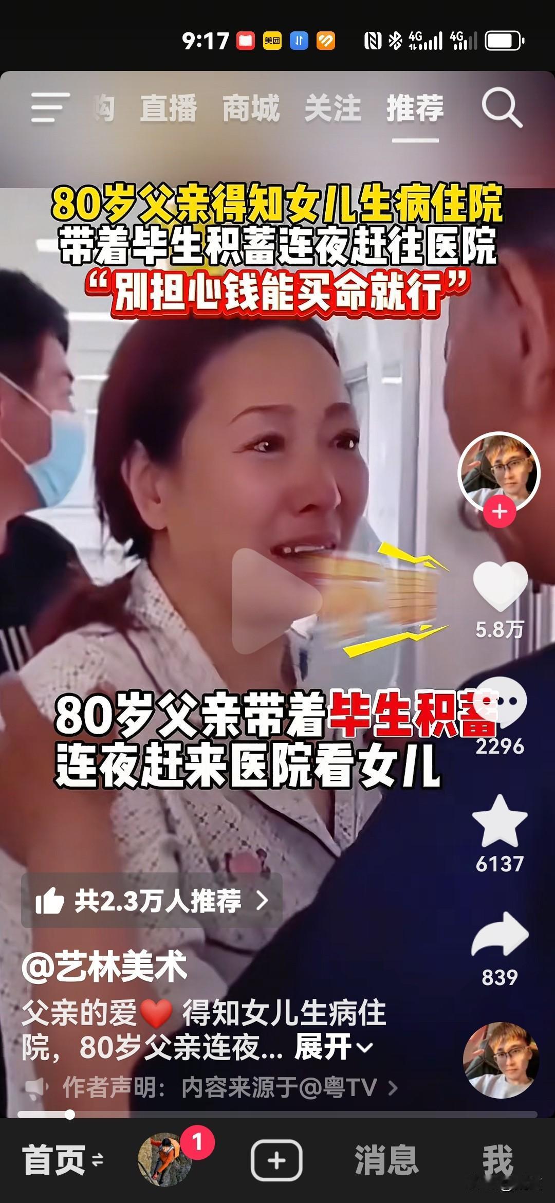 一个残酷的现实是,往往父母舍得拿出全部积蓄给儿女治病,儿女却未必舍得拿出大部分积蓄给父母治病。 人间最为珍贵的亲情,也不是双方奔扑。 为这位八十多岁父亲点赞吧,为天下前仆后继的父母点赞吧。 只管付出,不要回报,这大概正是亲情的珍贵和魅力。