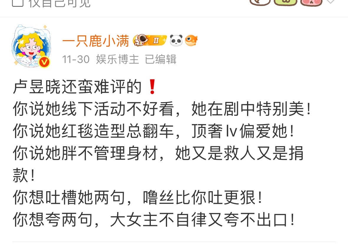 卢昱晓是最难评的一个女明星,夸 夸不出口,吐槽 吐槽不了,一边翻车一边做公益,一边造型难看一边被奢牌青睐!