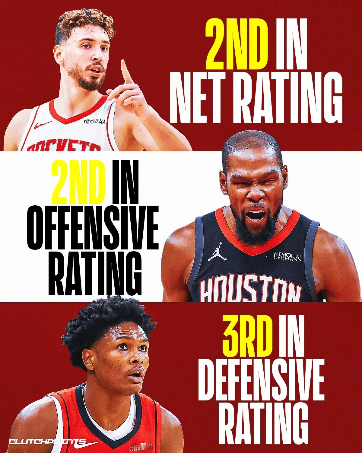 赛季至今的火箭!净效率联盟第二,进攻效率联盟第二、防守效率联盟第三!