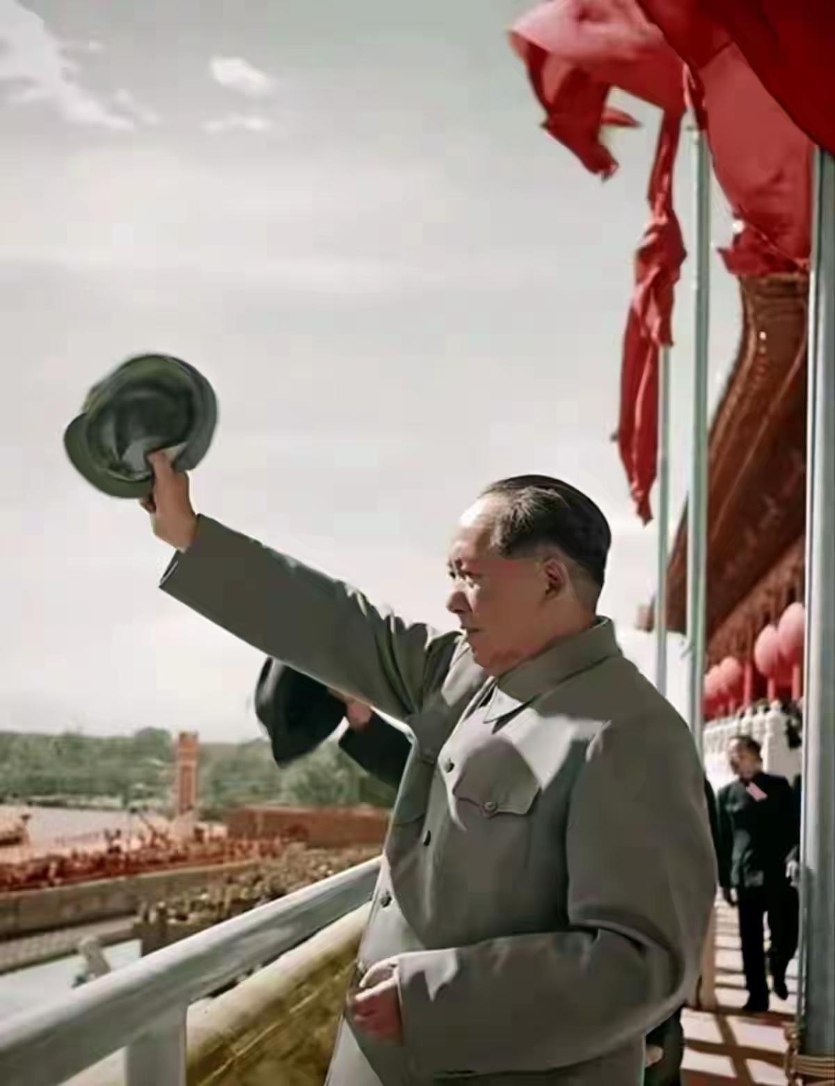 那年国庆,毛主席在天安门城楼看到万众欢呼的人民,非常激动,赶快脱帽向他们致意。毛主席来自人民,根植于人民,人民就是他的天,人民就是他的地。他必义不容辞,不辜负亿万人民,甘赴汤蹈火,披荆斩棘,为人民利益而奋斗…