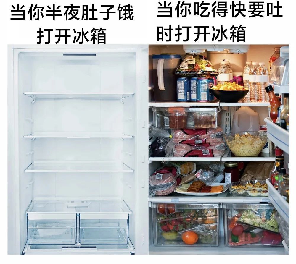 当你半夜肚子饿打开冰箱 当你吃得快要吐时打开冰箱