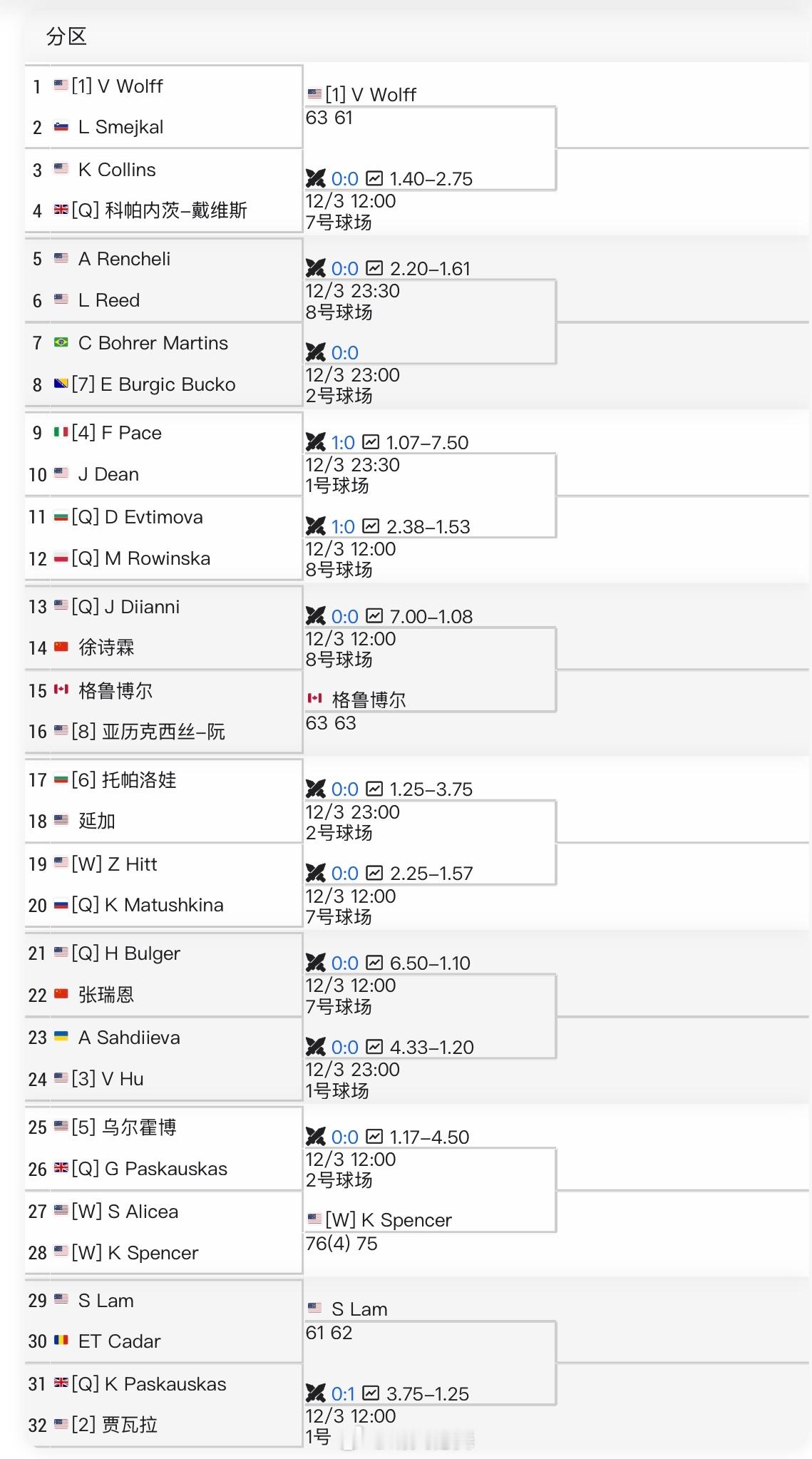 ITF德通纳海滩W35单打首轮对阵徐诗霖🇨🇳 vs Diianni🇺🇸赔率:1.08 vs 7.0张瑞恩🇨🇳 vs Bulger🇺🇸赔率:1.10 vs 6.5网球talking大会