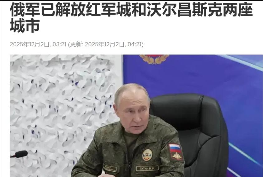 俄军宣布夺城,乌方无回应,伤亡成谜。 11月30日,克宫发言人说普京视察了俄军指挥所,见了总参谋长等人,但没说明位置。12月2日俄媒突然发布消息,称俄军解放了沃夫昌斯克和波克罗夫斯克,并放出升旗照片。不过西方主流媒体没跟进报道,乌军还没正式回应,之前库皮扬斯克的情况也是这样。 这两个城打了快15个月,俄军投入大量预备队。西方估算这边损失25万人,有俄军博主说死10万人,和巴赫穆特伤亡差不多。乌军在波克罗夫斯克已经守了这么久,现在俄方宣布拿下,但没人知道真实情况,尤其是北部区域还没控制。 俄计划下一步打斯拉维扬斯克和克拉玛托尔斯克,但已经耗尽兵力。乌军明确表示不会放弃任何地盘,就算最后守不住,也要打成废墟,不让俄军轻松得到。
