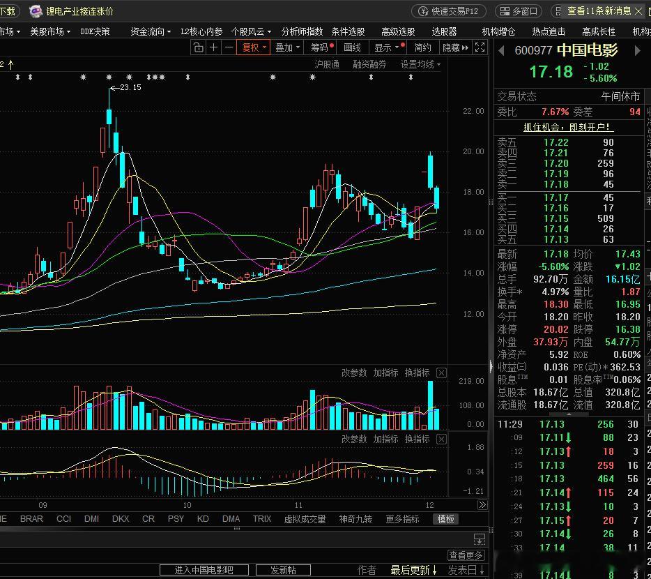 中国电影,这种票就是来害人的,突然起涨。要么跟不进去,要么买到手站岗,昨天40亿的巨量阴线,不跌你个几个月很难刹住车,里面的人自求多福吧!欢迎加入我们的免费交流群股票 财经