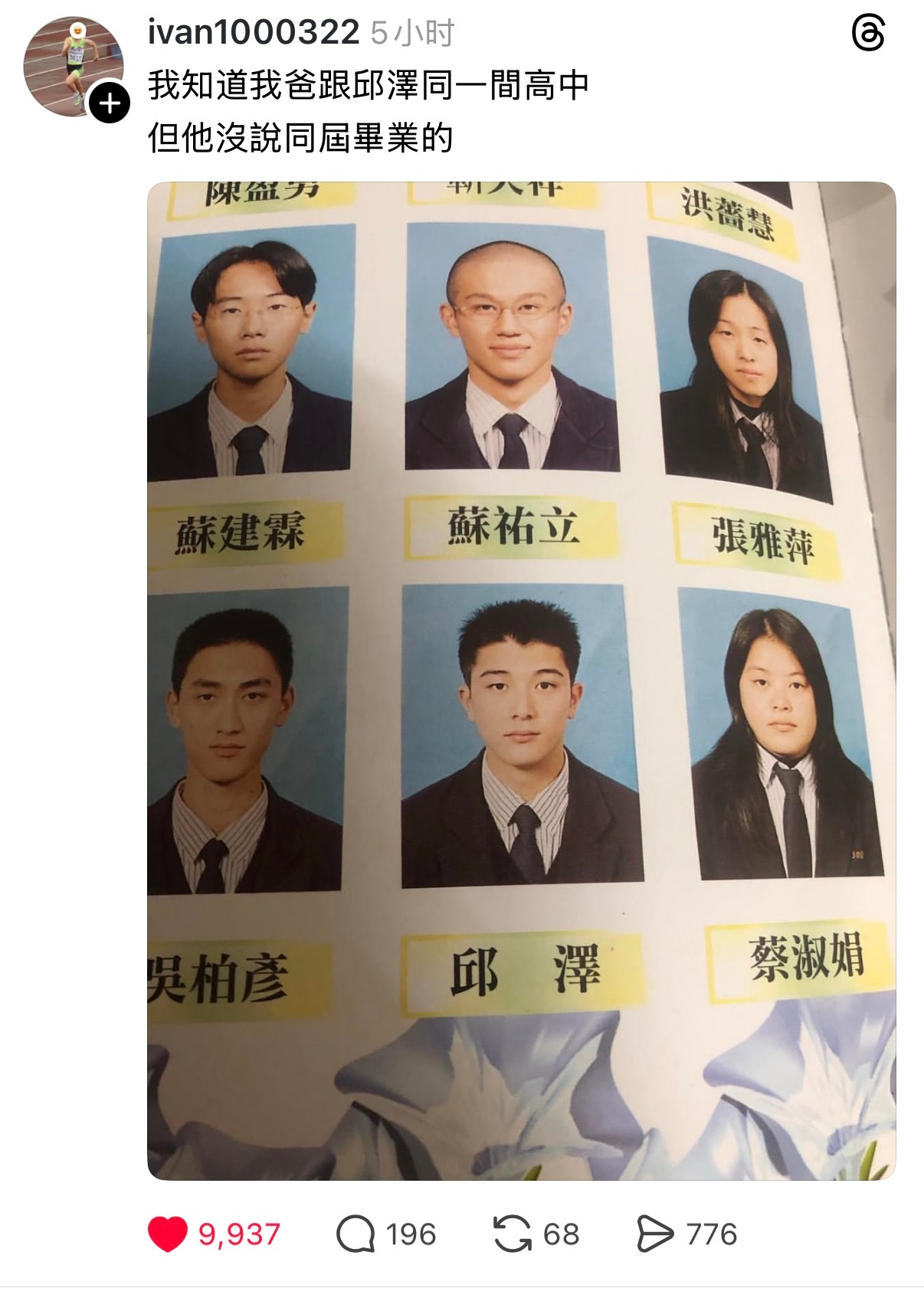 网友分享 邱泽高中照片脆:ivan1000322