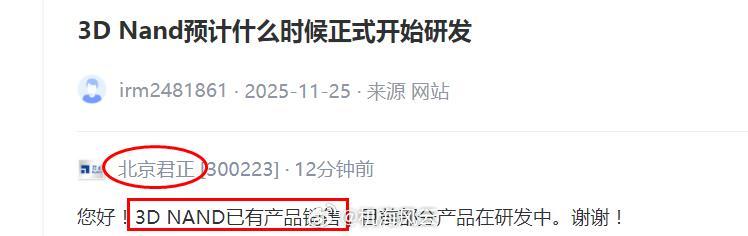 北京君正再下一城!3D NAND已有产品在销售,部分产品在研发中