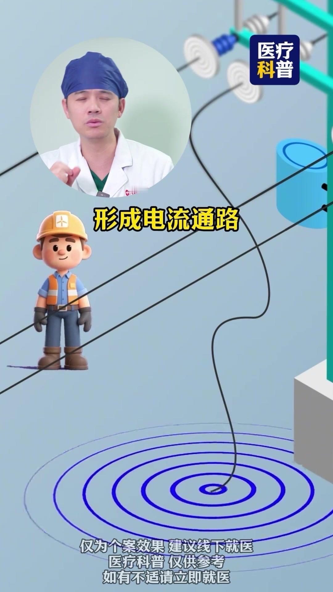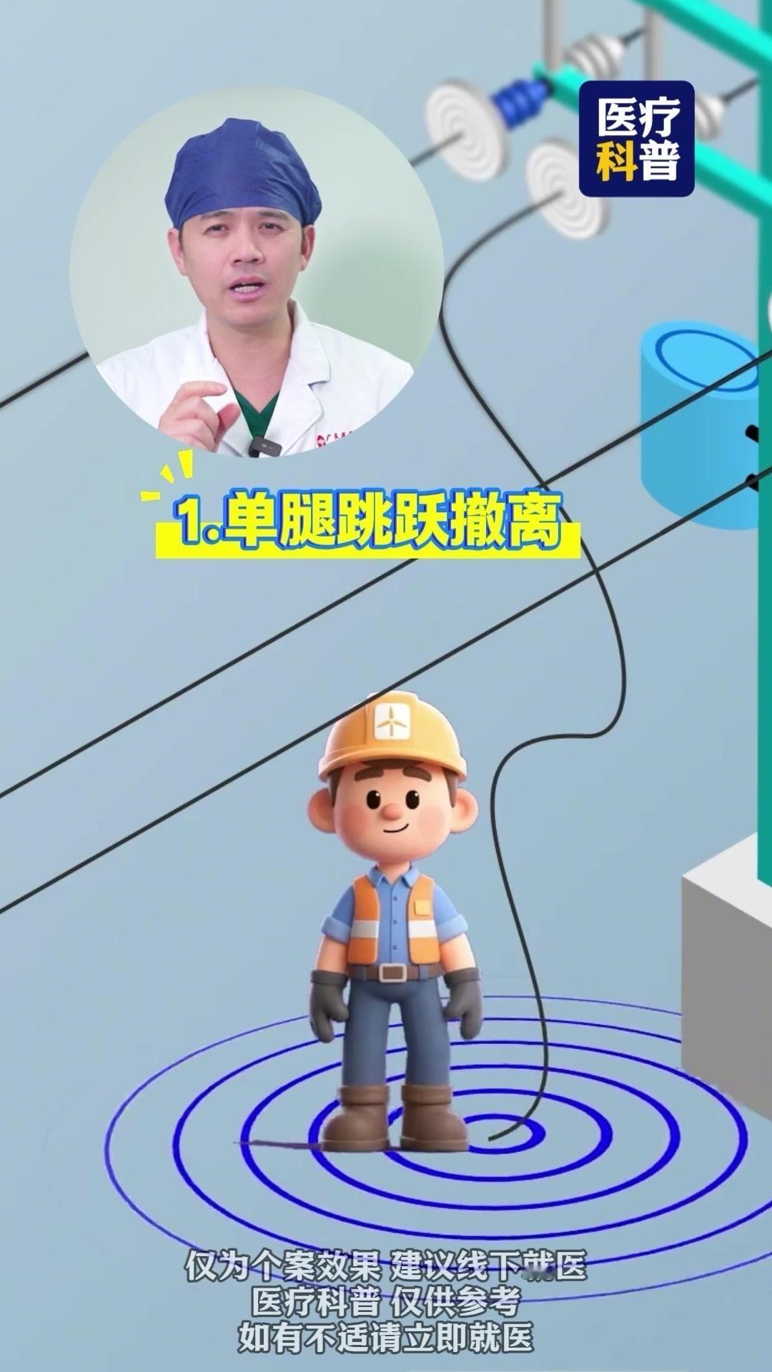 高压线砸脚边别乱跑!10米内这样避险更安全 ⚡高压电线落地会形成跨步电压,双脚分开越大,电压差越明显,触电风险越高。趴在地上挪动更危险,身体接触地面面积越大,触电概率直接翻倍。 1️⃣单腿跳跃撤离:全程保持一只脚着地,通过跳跃往后退,避免双脚同时接触地面形成电流通路。 2️⃣并拢小碎步挪移:双脚紧紧贴在一起,小碎步缓慢移动至10米外安全区域,途中切勿抬脚迈大步。 抵达安全区后,立即拨打95598联系专业电工处理,切勿自行靠近或触碰电线。 雷雨天不在电箱、电线杆周边逗留,保持5米以上安全距离;高压线下严禁放风筝、搭建棚屋,碰线后果不堪设想。