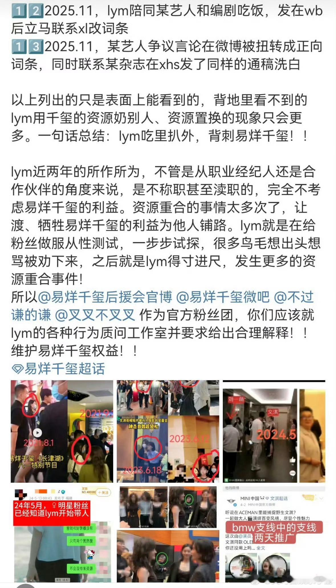 易烊千玺后援会向经纪人维权!此前因易烊千玺和文淇同一个经纪人,存在zy重叠现象,易烊千玺粉丝向经纪人维权易烊千玺文淇 经纪人易烊千玺后援会维权