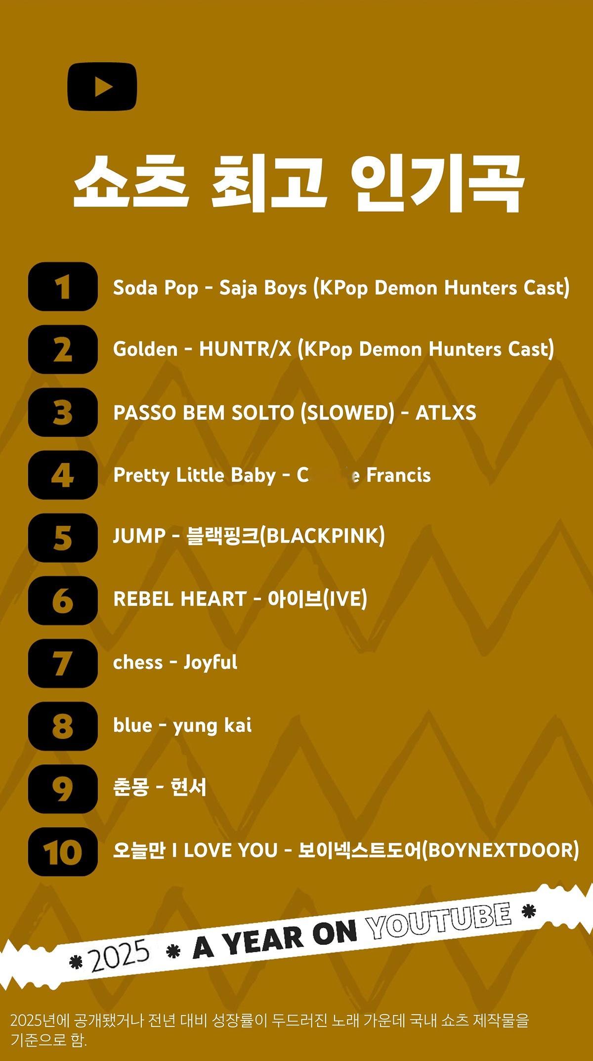 2025YouTube年末结算-shorts最棒人气歌曲TOP10 海外新鲜事热