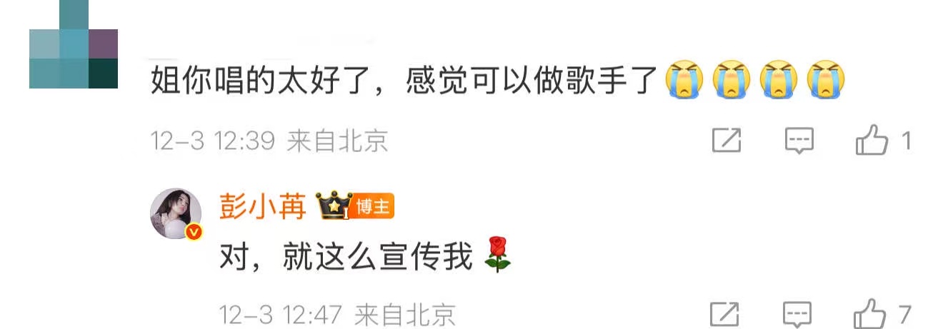 彭小苒 对就这么宣传我 彭小苒新曲《把故事还给昨天》旋律温柔,唱尽情愫,这种叙事感让人沉浸其中。面对粉丝的夸奖,姐也回复 “对就这么宣传我” 臭屁又可爱!