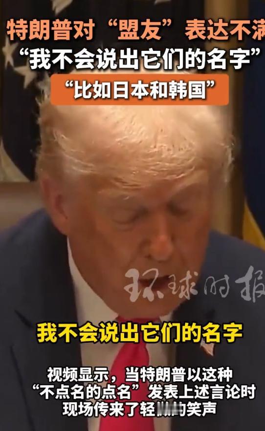 把我看笑了! 我不会提到他们的名字! 比如日本和韩国! 近日特朗普开始。 控诉自己的盟友。 控诉他们一直在剥削自己。 把自己伪装成一个无辜者。 一个纯纯的受害者。 这里还不忘为盟友打掩护。 尤其是日本和韩国。 美国坚决捍卫了。 两国的名声。 绝不会把两国说出口!