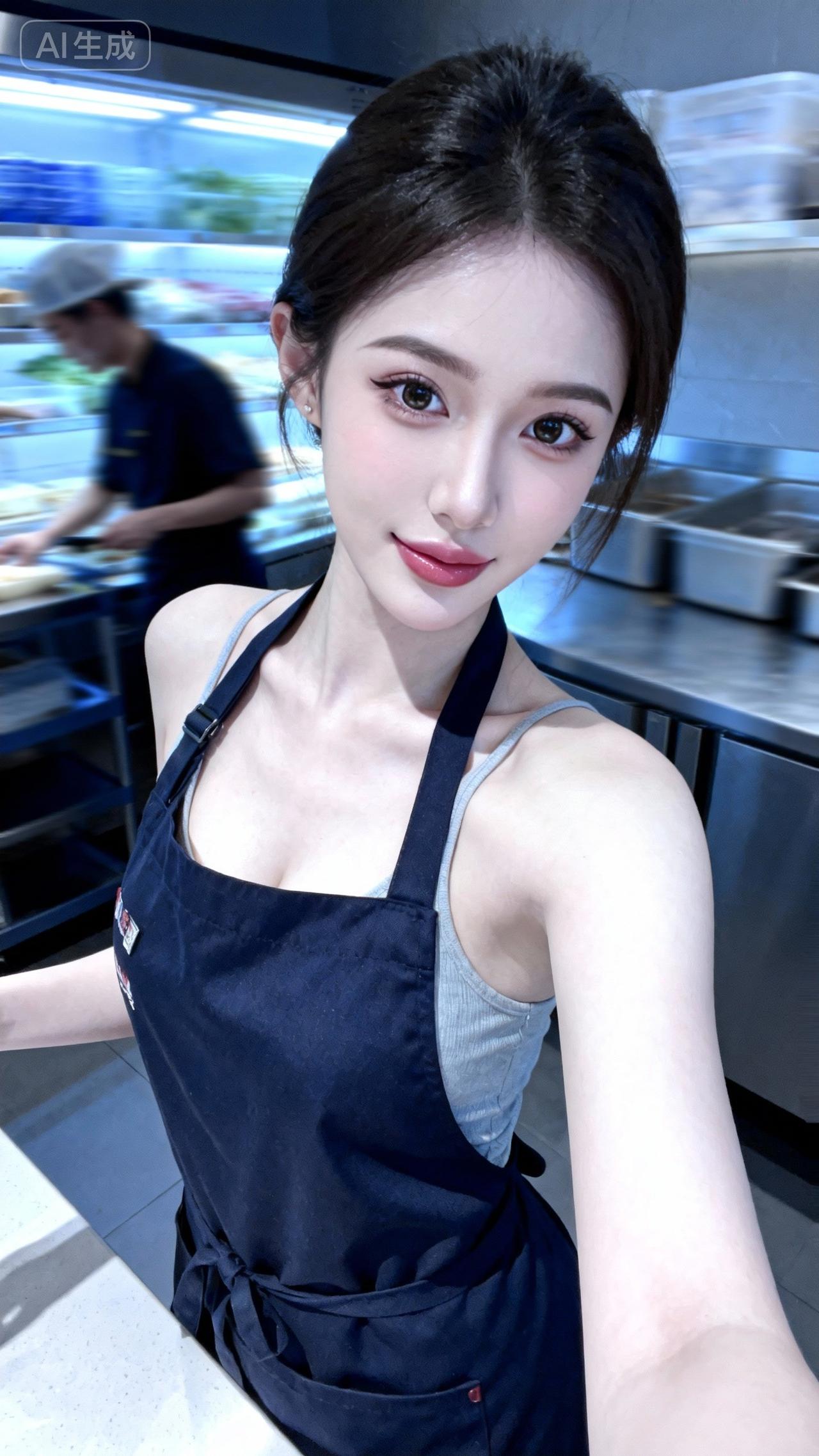 黑发少女,温柔眼神,甜美微笑,自然妆容,清新自然,让人心动。